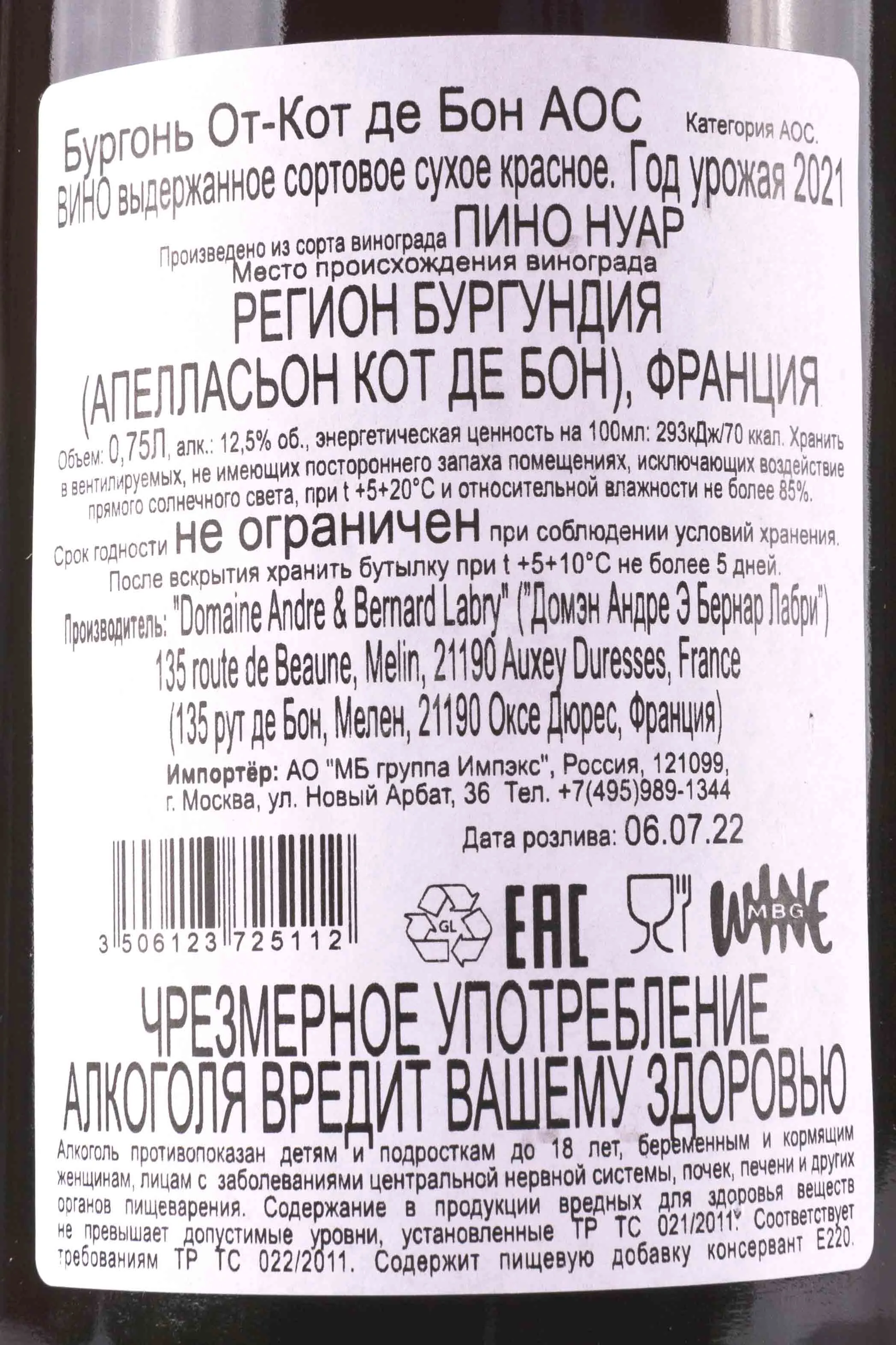 Домен Лабри Бургонь От-Кот де Бон 2021 0.75