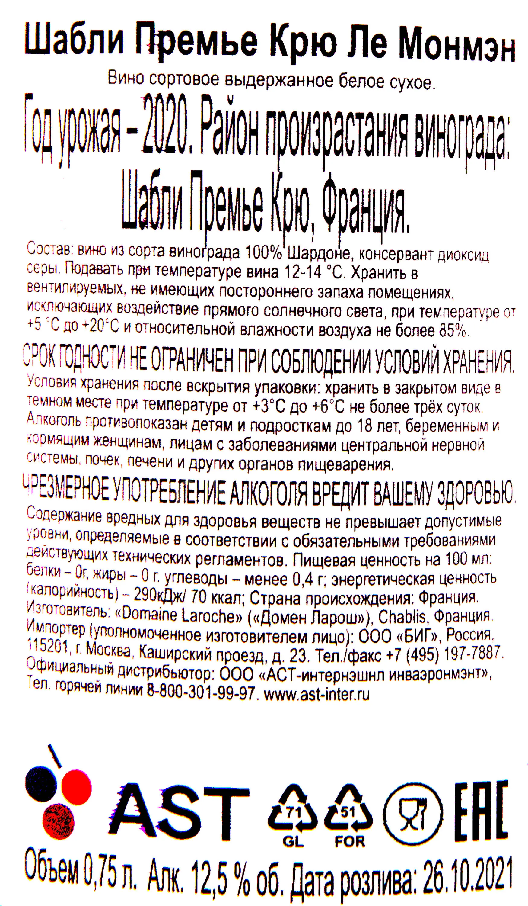 Domaine Laroche Chablis 1-er Cru Les Montmains 0.75 л купить - Французское вино Шабли Премье Крю Ле Монмэн цена в магазинег. Москва, ул. Профсоюзная, д. 16/1010:00-22:00 Ежедневно+7 (495) 920-20-02info@cru.ru