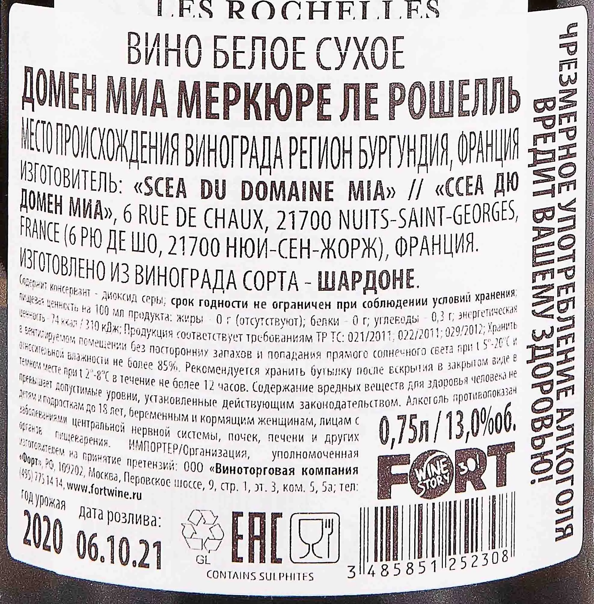 Domaine MIA Les Rochelles Mercurey 0.75 л купить - Французское вино Домен МИА Меркюре Ле Рошелль цена в магазине г. Москва, ул. Профсоюзная, д. 16/10 10:00-22:00 Ежедневно +7 (495) 920-20-02 info@cru.ru