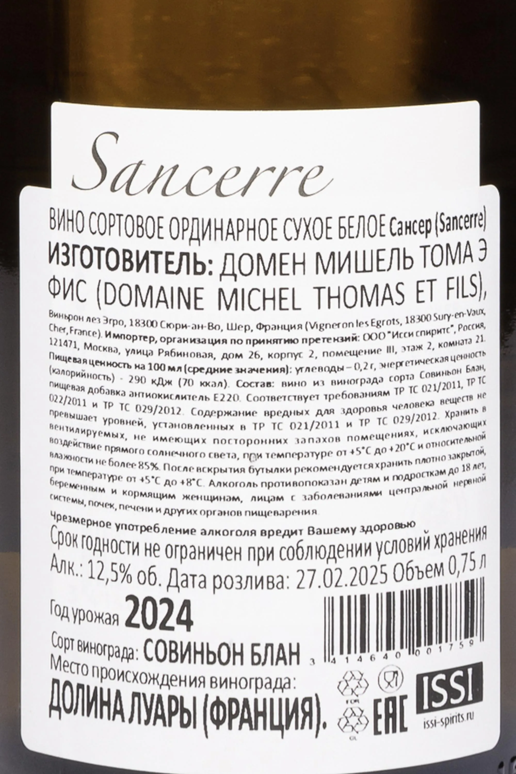 Domaine Michel Thomas & Fils Sancerre 0.75 л купить - Французское вино Домен Мишель Тома э Фис Сансер цена в магазинег. Москва, ул. Профсоюзная, д. 16/1010:00-22:00 Ежедневно+7 (495) 920-20-02info@cru.ru
