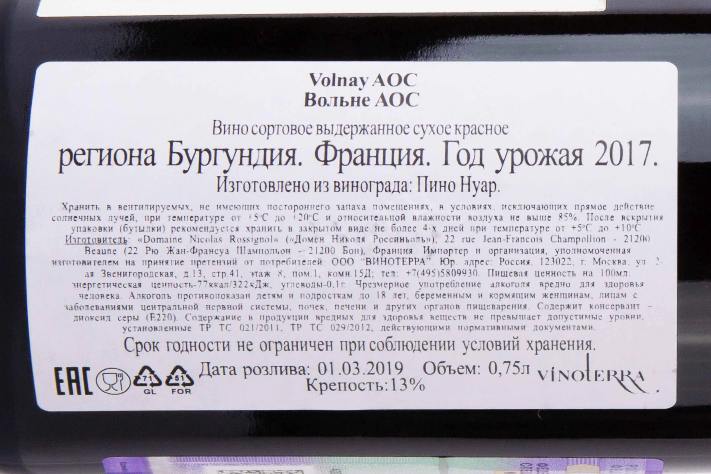 Domaine Nicolas Rossignol Volnay AOC 0.75 л купить - Французское вино Домен Николя Россиньоль Вольне цена в магазине г. Москва, ул. Профсоюзная, д. 16/10 10:00-22:00 Ежедневно +7 (495) 920-20-02 info@cru.ru