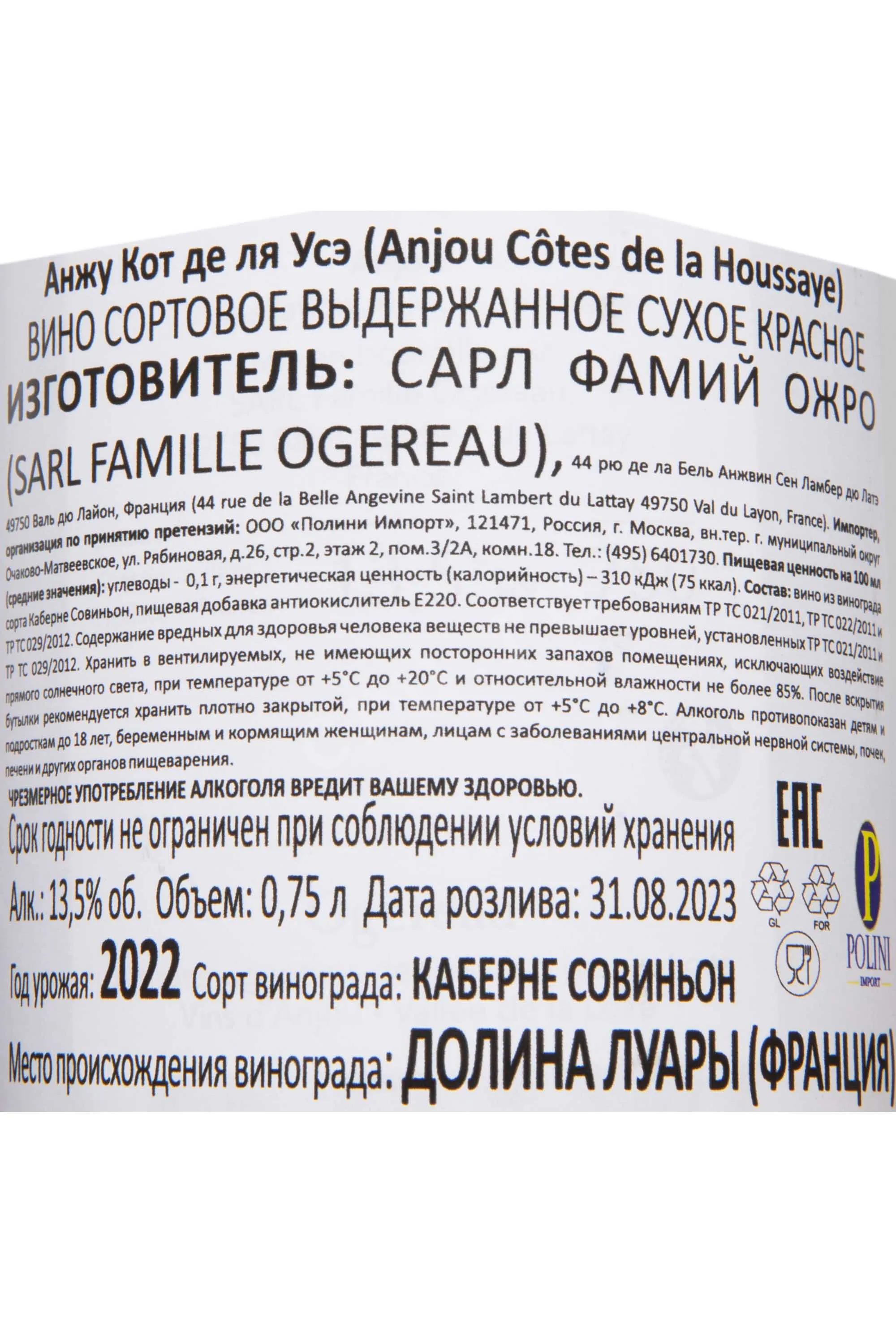 Domaine Ogereau Anjou Côte de la Houssaye 0.75 л купить - Французское вино Домен Ожро Анжу Кот де ля Усэ цена в магазинег. Москва, ул. Профсоюзная, д. 16/1010:00-22:00 Ежедневно+7 (495) 920-20-02info@cru.ru