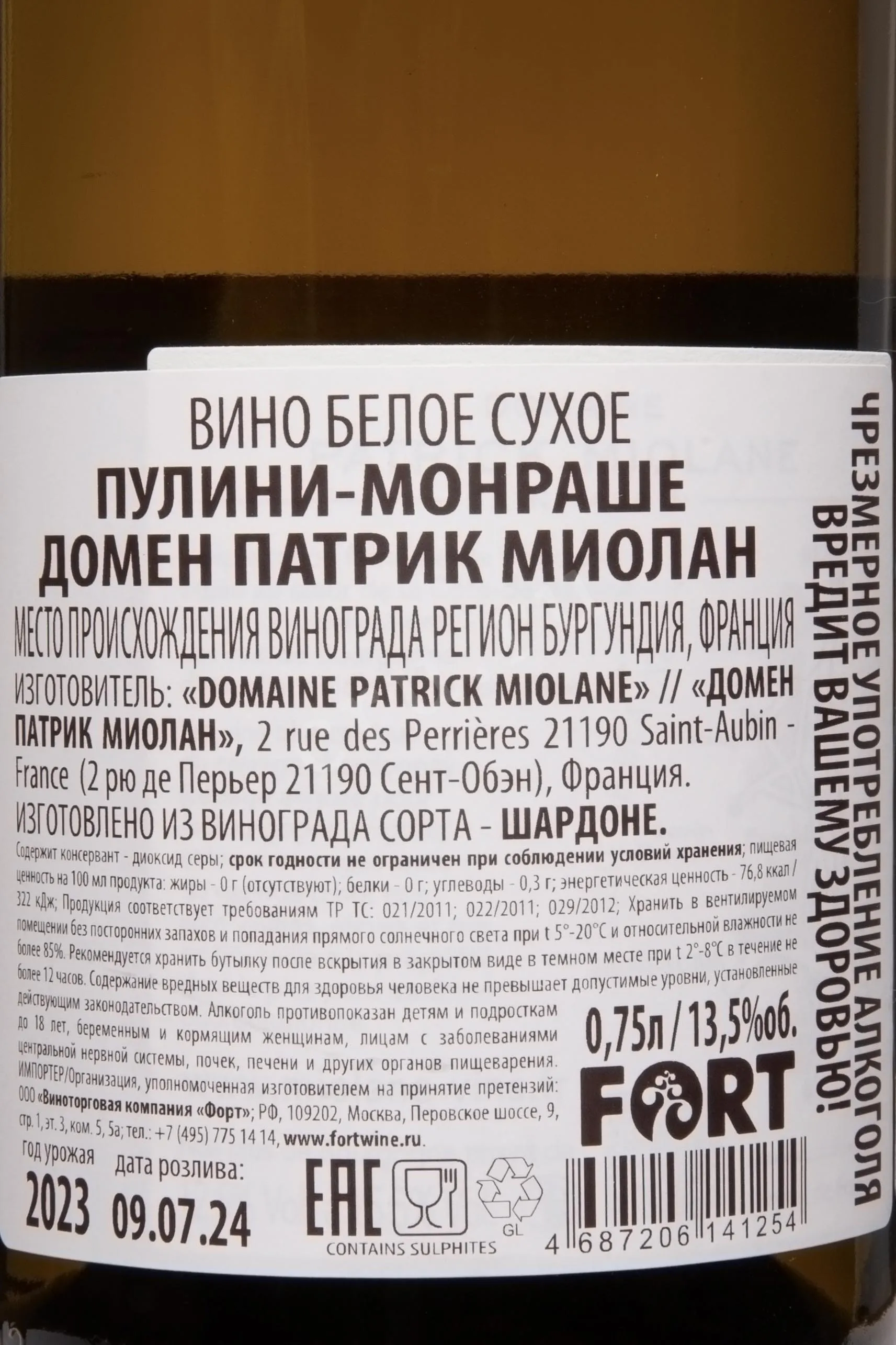 Домен Патрик Миолан Пулини-Монраше Сент-Обен АОС 2023 0.75