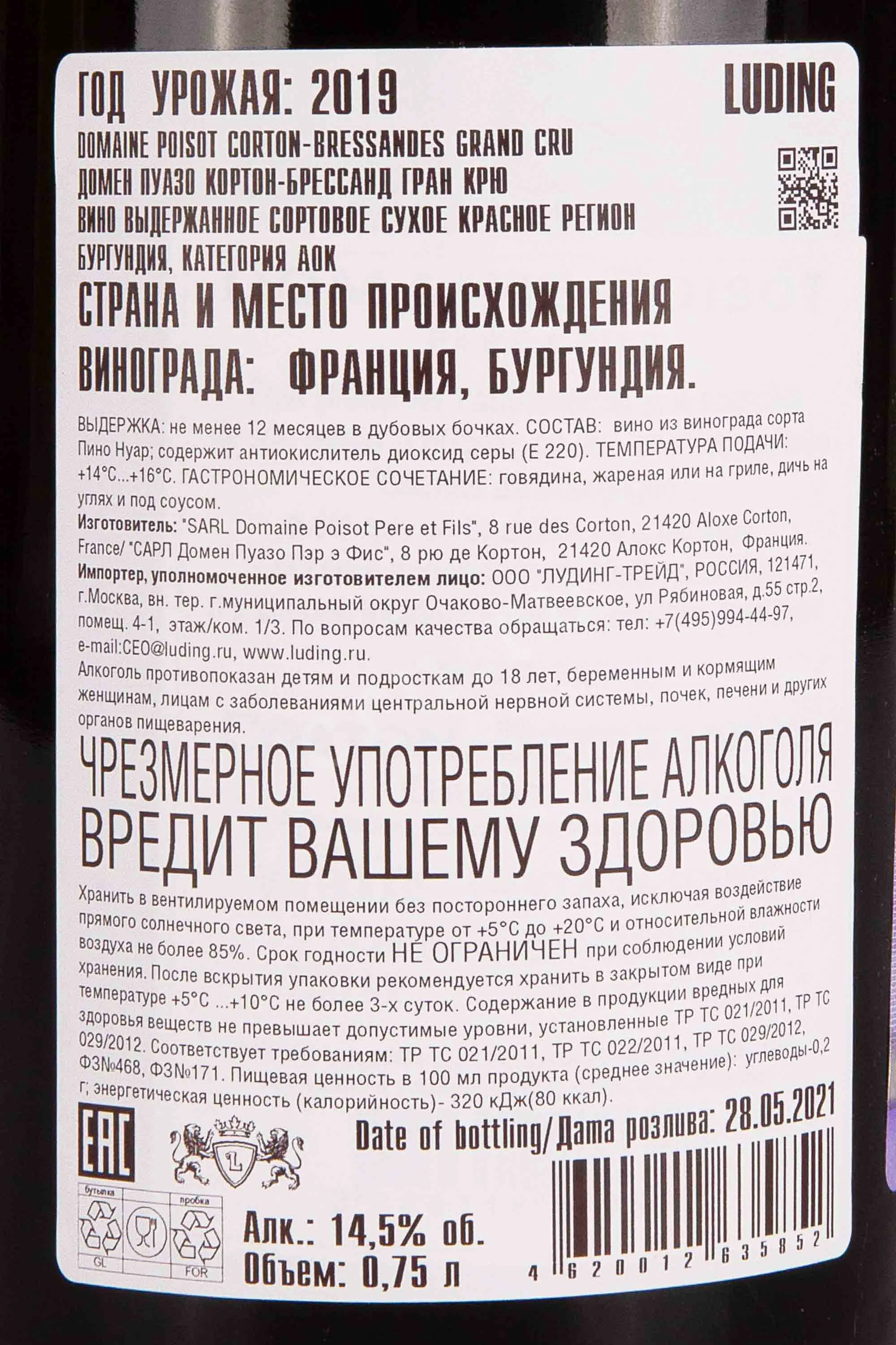 Домен Пуазо Пэр э Фис Кортон-Брессанд Гран Крю 2019 0.75