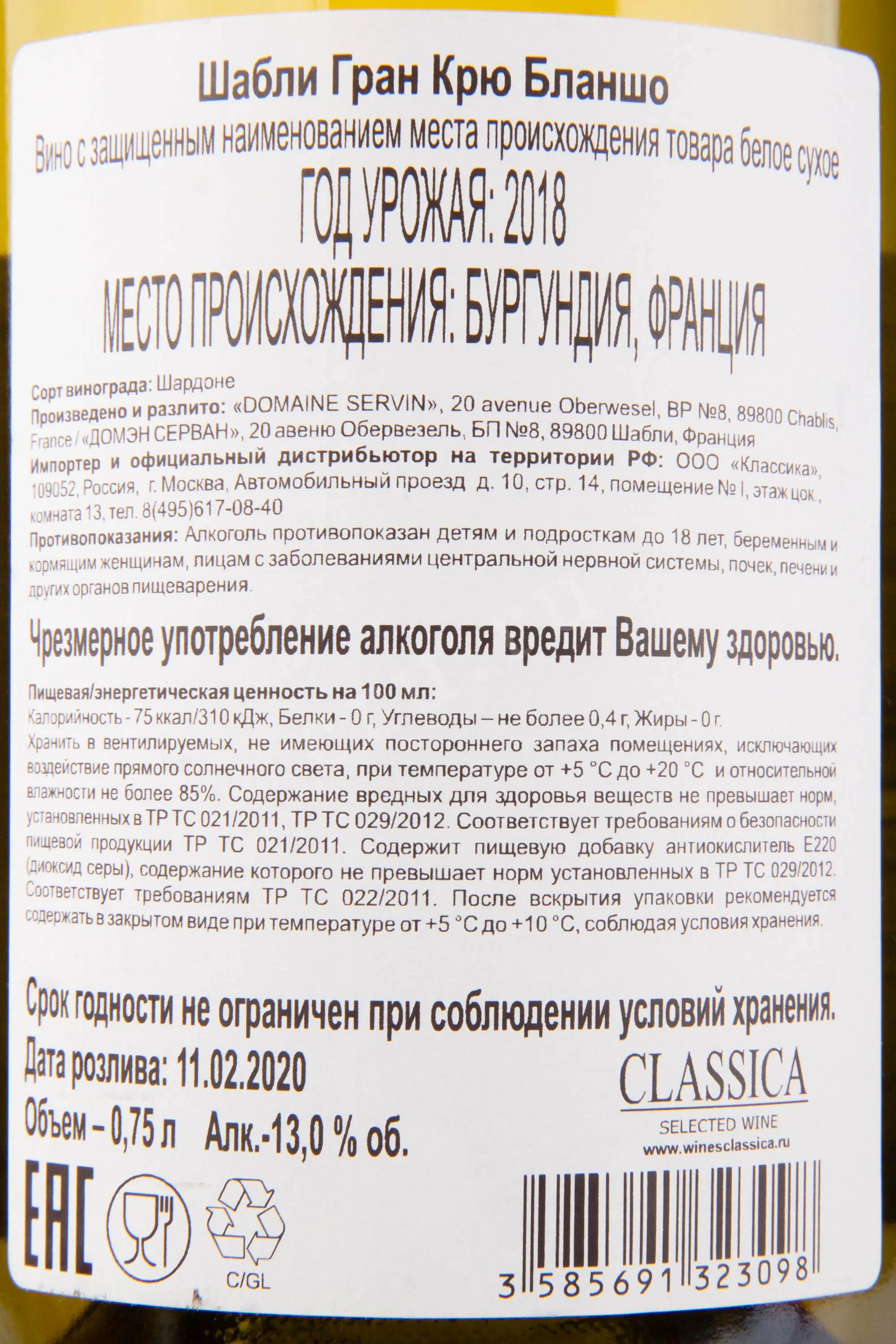 Domaine Servin Chablis Premier Cru Blanchot 2018 0.75 л купить - Французское вино Домен Сервин Шабли Премьер Крю Бланшот цена в магазинег. Москва, ул. Профсоюзная, д. 16/1010:00-22:00 Ежедневно+7 (495) 920-20-02info@cru.ru