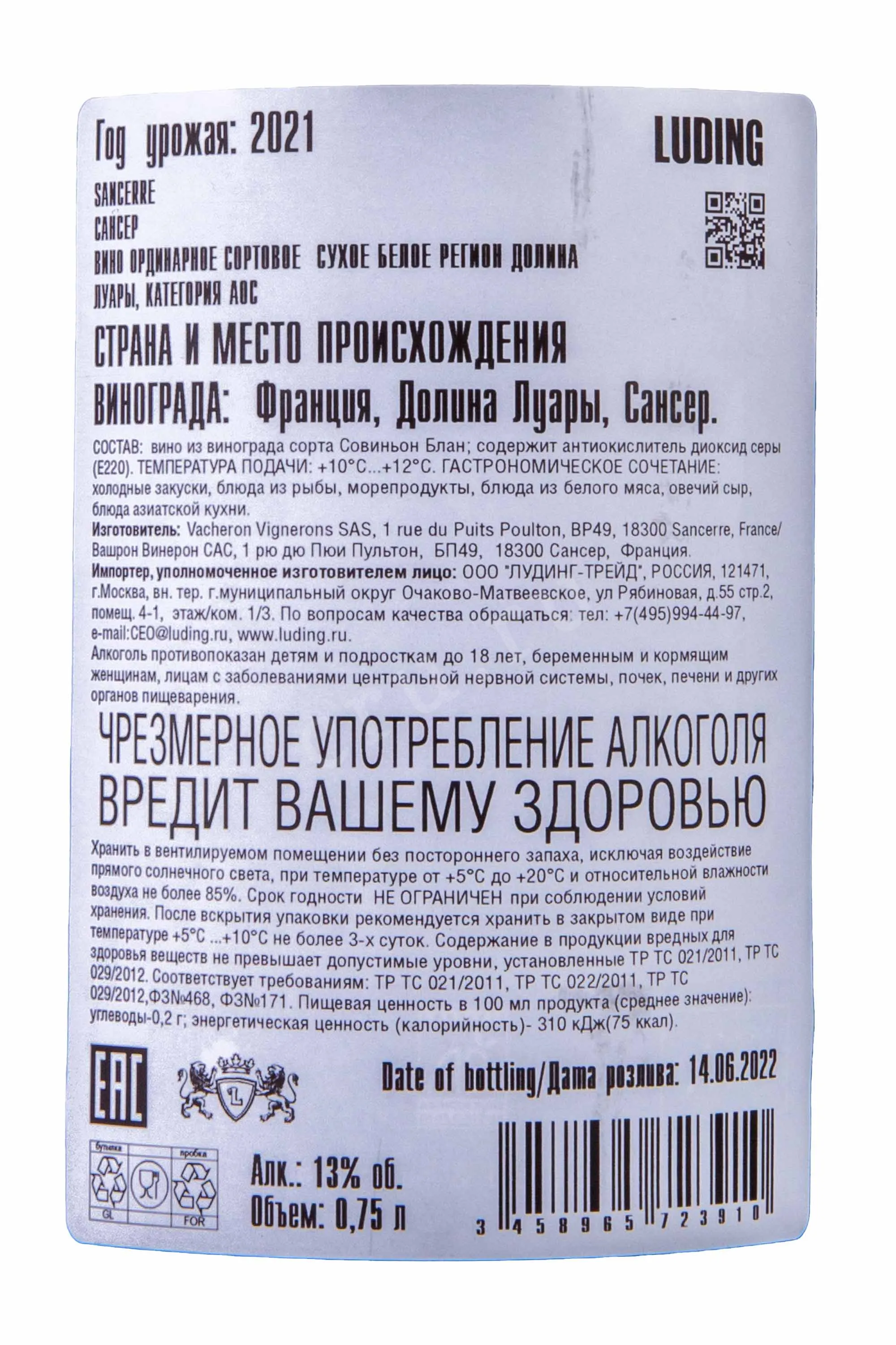 Domaine Vacheron & Fils Sancerre Blanc AOC 0.75 л купить - Французское вино Домен Вашрон & Фис Сансер Блан цена в магазинег. Москва, ул. Профсоюзная, д. 16/1010:00-22:00 Ежедневно+7 (495) 920-20-02info@cru.ru