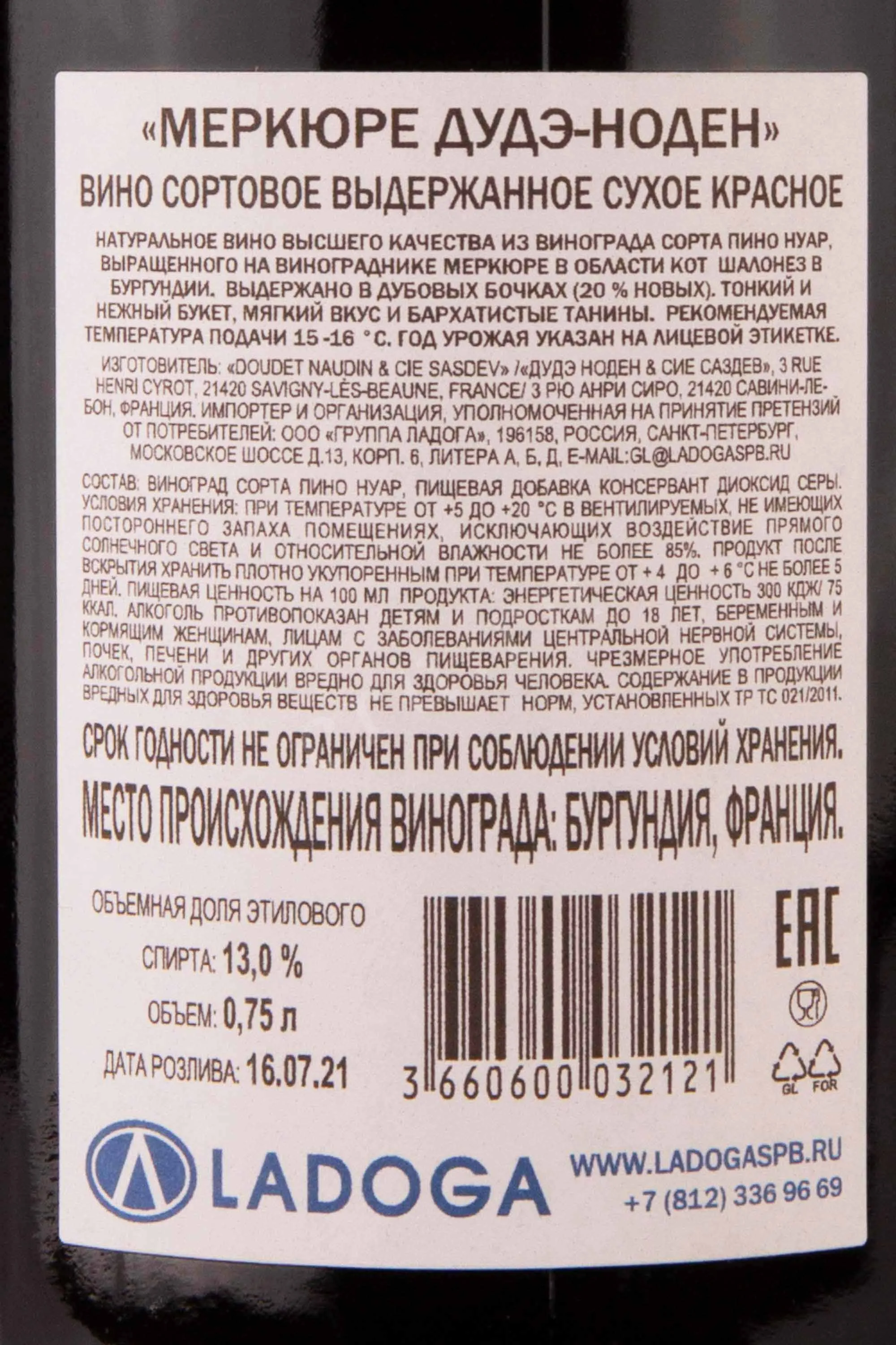 Doudet Naudin Mercurey 0.75 л купить - Французское вино Меркюре Дудэ-Ноден цена в магазине г. Москва, ул. Профсоюзная, д. 16/10 10:00-22:00 Ежедневно +7 (495) 920-20-02 info@cru.ru