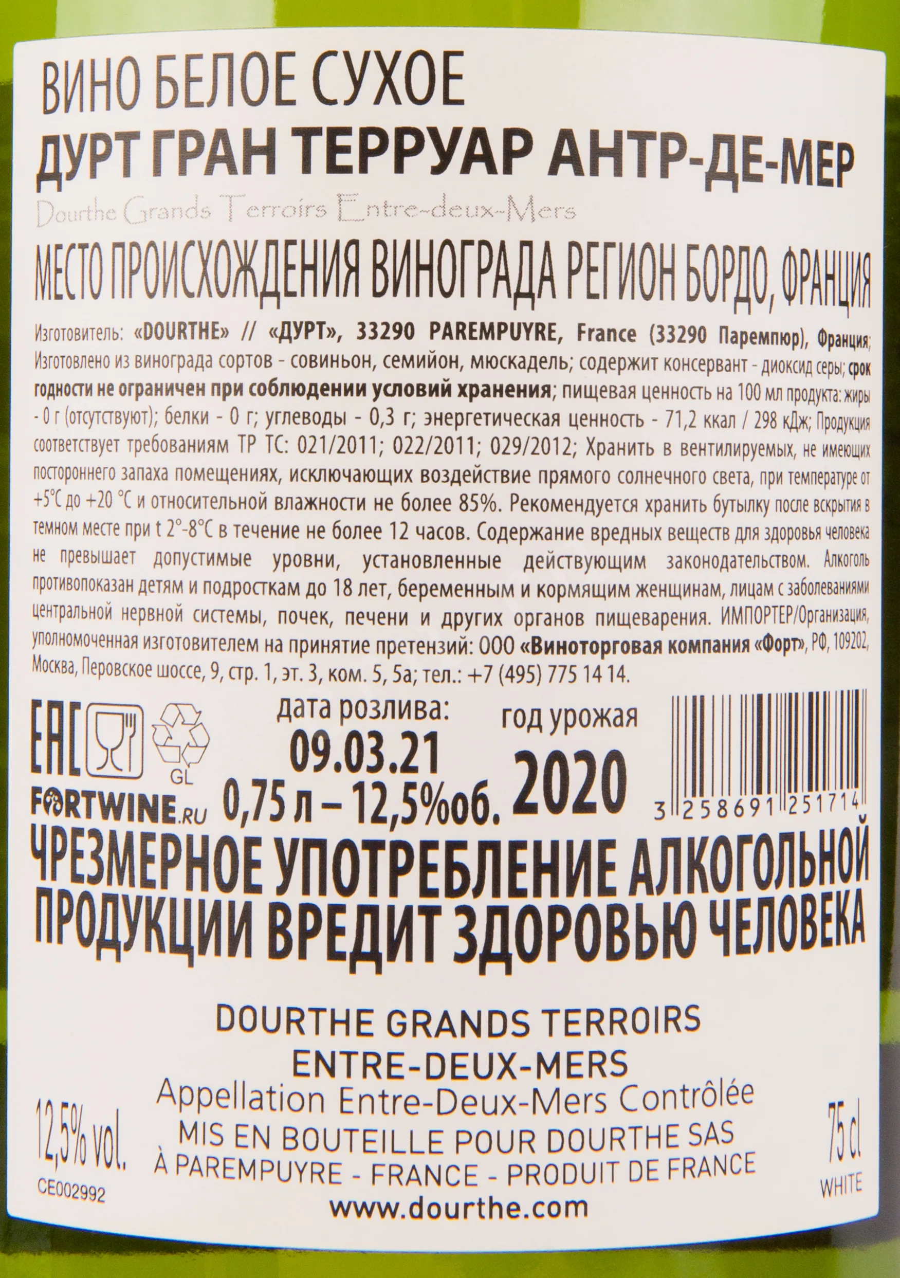 Dourthe Grands Terroirs Entre-Deux-Mers 0.75 л купить - Французское вино Дурт Гран Терруар Антр-Де-Мер цена в магазине г. Москва, ул. Профсоюзная, д. 16/10 10:00-22:00 Ежедневно +7 (495) 920-20-02 info@cru.ru