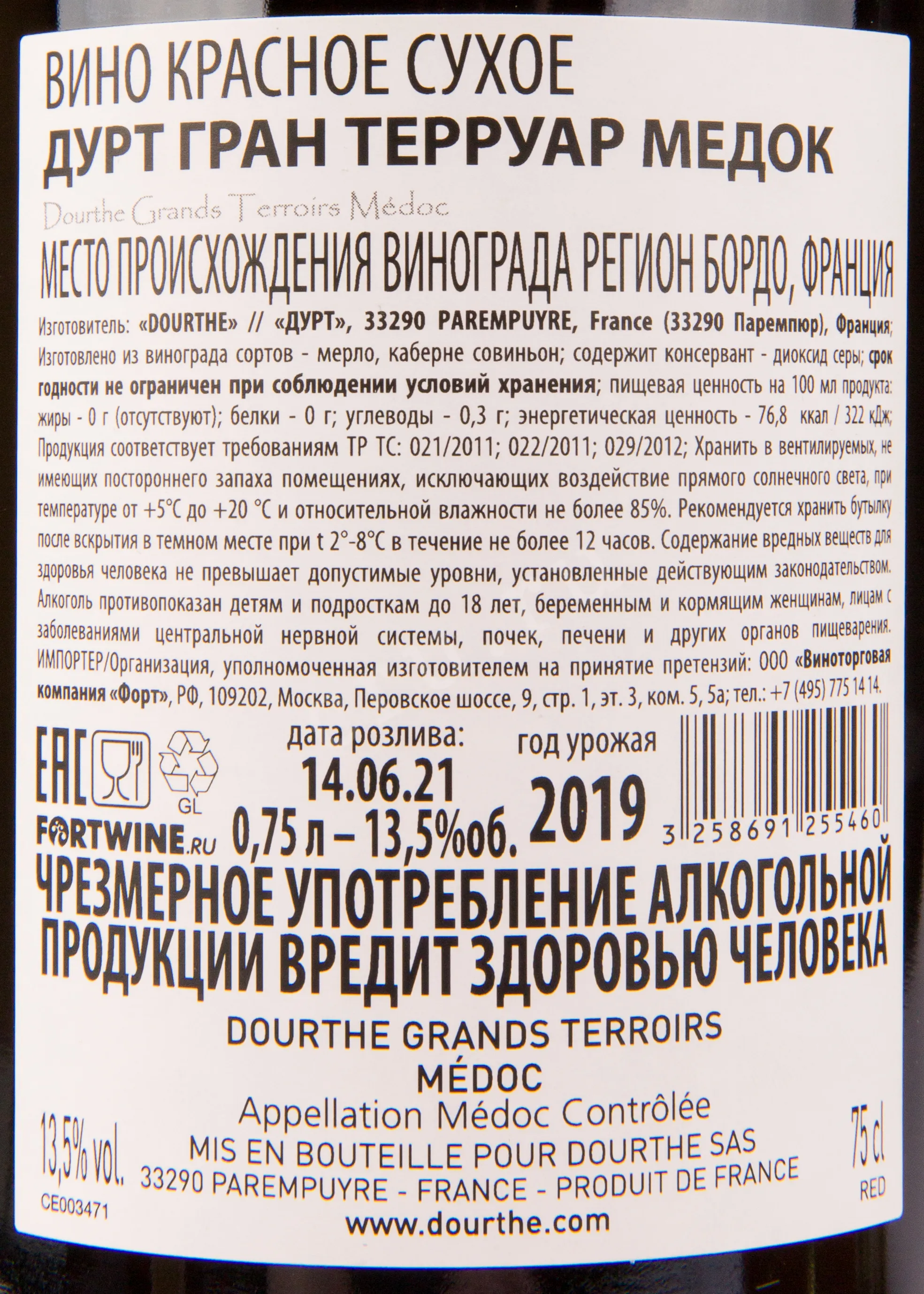 Dourthe Grands Terroirs Medoc 0.75 л купить - Французское вино Дурт Гран Терруар Медок цена в магазине г. Москва, ул. Профсоюзная, д. 16/10 10:00-22:00 Ежедневно +7 (495) 920-20-02 info@cru.ru
