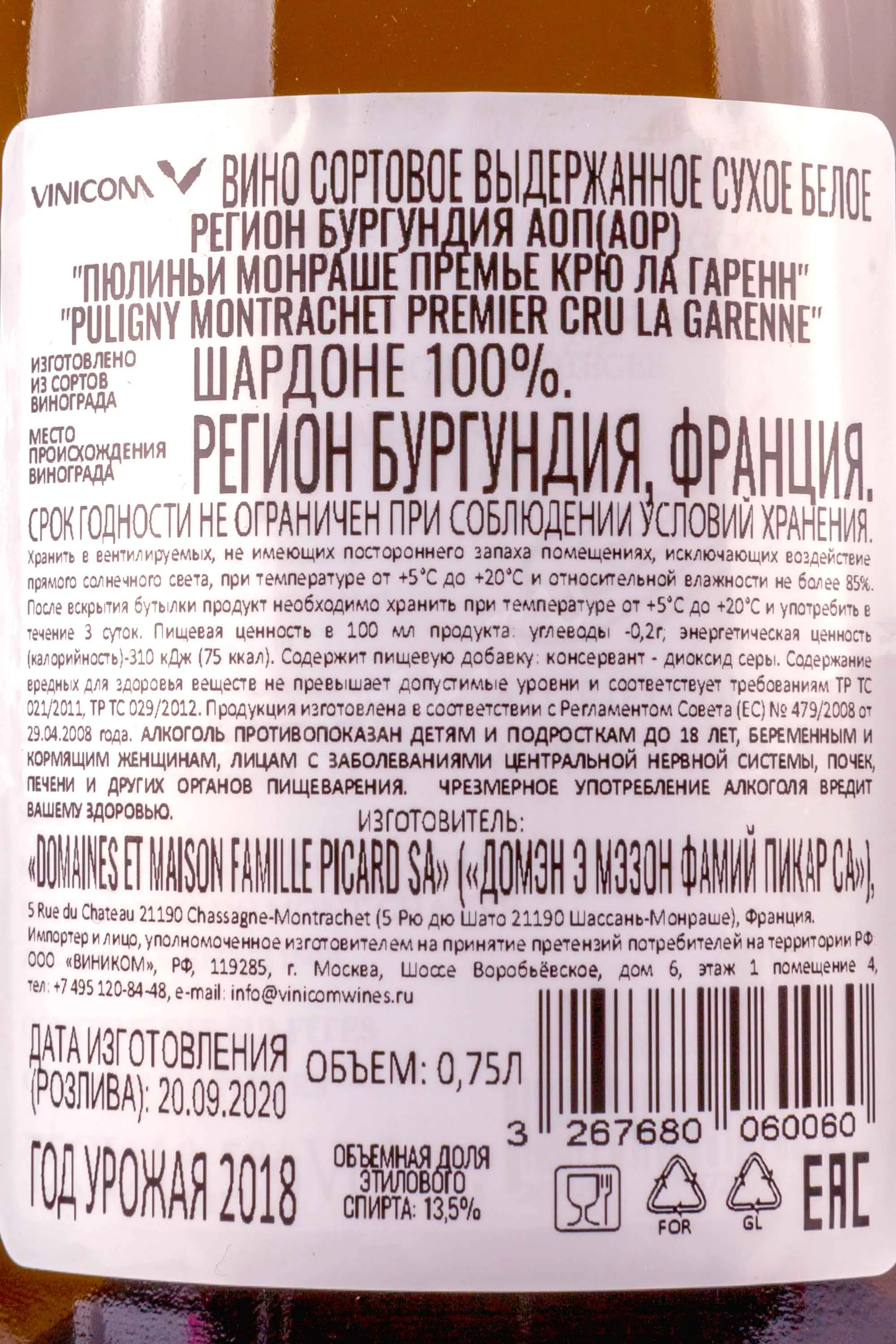 Famille Picard Puligny-Montrachet Premier Cru La Garenne 0.75 л купить - Французское вино Домэн Пикар Пюлиньи Монраше Премье Крю Ла Гаренн цена в магазинег. Москва, ул. Профсоюзная, д. 16/1010:00-22:00 Ежедневно+7 (495) 920-20-02info@cru.ru