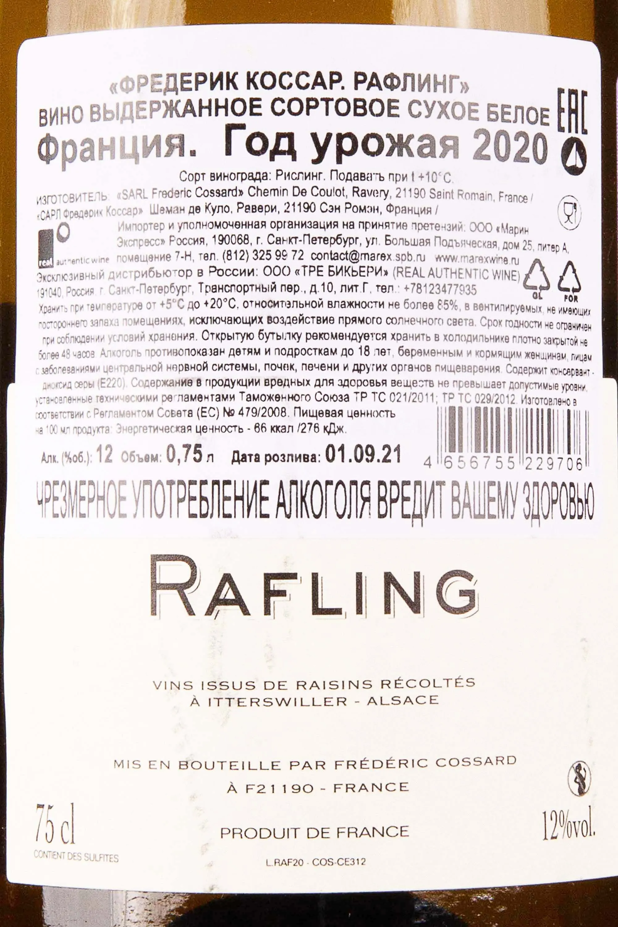 Frederic Cossard Rafling 0.75 л купить - Французское вино Фредерик Коссар Рафлинг цена в магазине г. Москва, ул. Профсоюзная, д. 16/10 10:00-22:00 Ежедневно +7 (495) 920-20-02 info@cru.ru