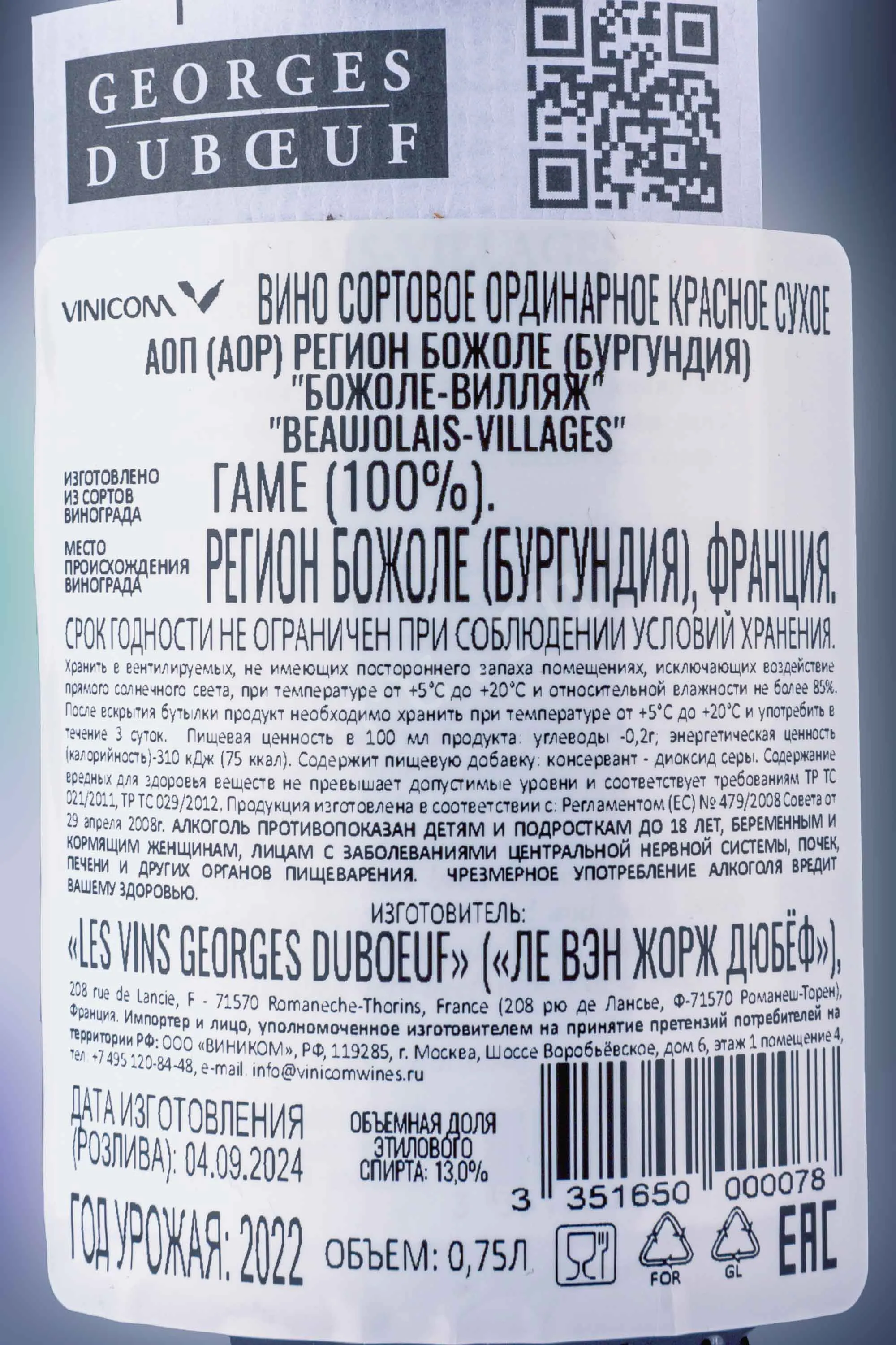 Вино Georges Duboeuf Beaujolais-Villages 2022 0.75 л