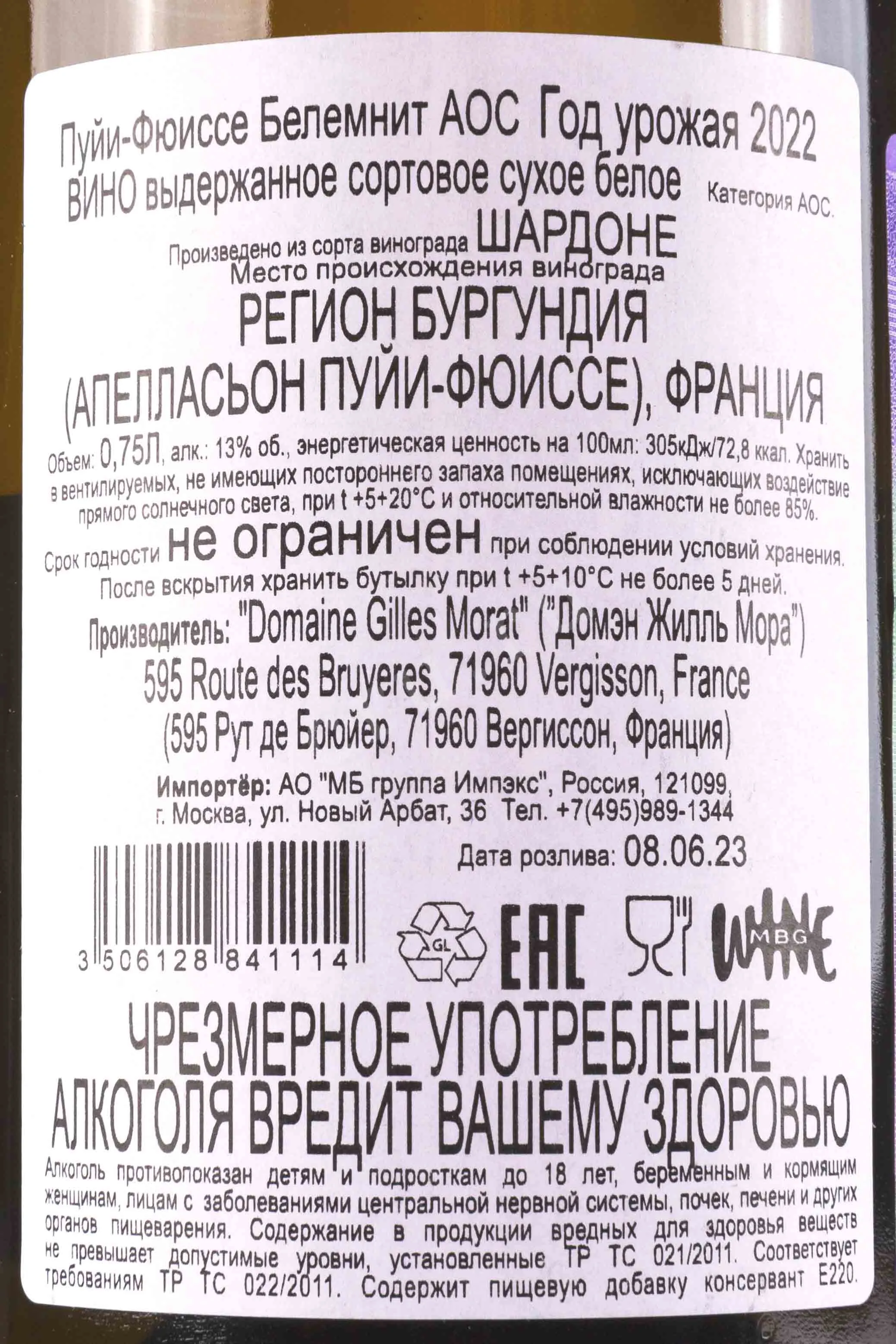 Gilles Morat Pouilly-Fuisse Belemnites 0.75 л купить - Французское вино Жилль Мора Пуйи-Фюиссе Белемнит цена в магазинег. Москва, ул. Профсоюзная, д. 16/1010:00-22:00 Ежедневно+7 (495) 920-20-02info@cru.ru