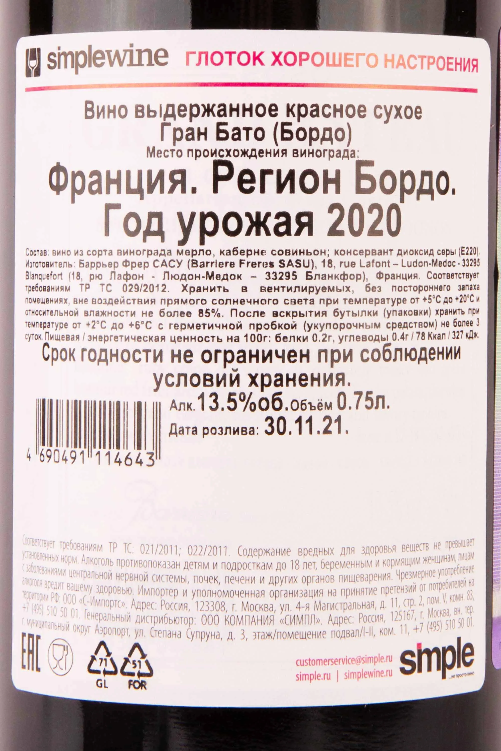 Гран Бато Бордо 2020 0.75