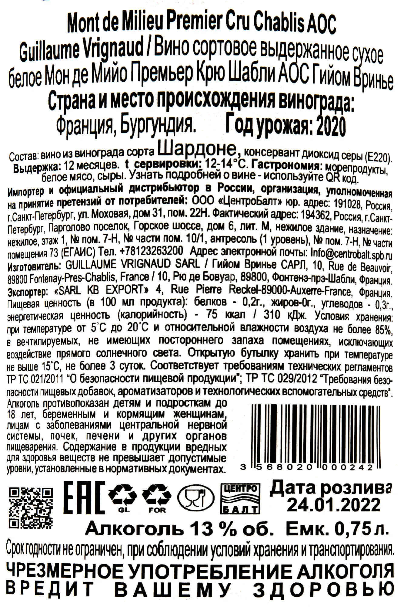 Guillaume Vrignaud Mont De Milieu 1-er Cru Chablis 0.75 л купить - Французское вино Гийом Вринье Мон де Мийо Премьер Крю Шабли цена в магазинег. Москва, ул. Профсоюзная, д. 16/1010:00-22:00 Ежедневно+7 (495) 920-20-02info@cru.ru
