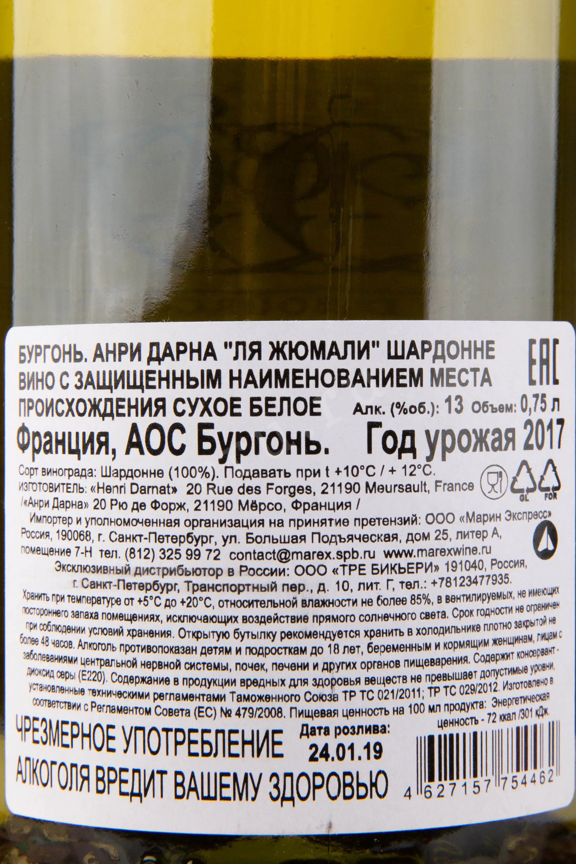 Бургонь Анри Дарна Ля Жюмали Шардоне 2017 0.75