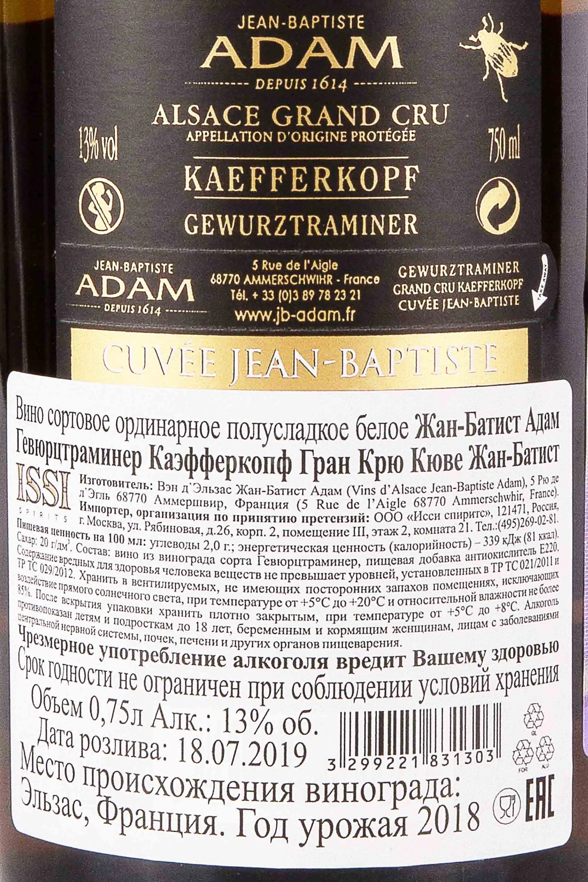 Jean-Baptiste Adam Gewurztraminer Kaefferkopf Grand Cru Cuvee 0.75 л купить - Французское вино Жан-Батист Адам Гевюрцтраминер Каэфферкопф Гран Крю Кюве цена в магазинег. Москва, ул. Профсоюзная, д. 16/1010:00-22:00 Ежедневно+7 (495) 920-20-02info@cru.ru