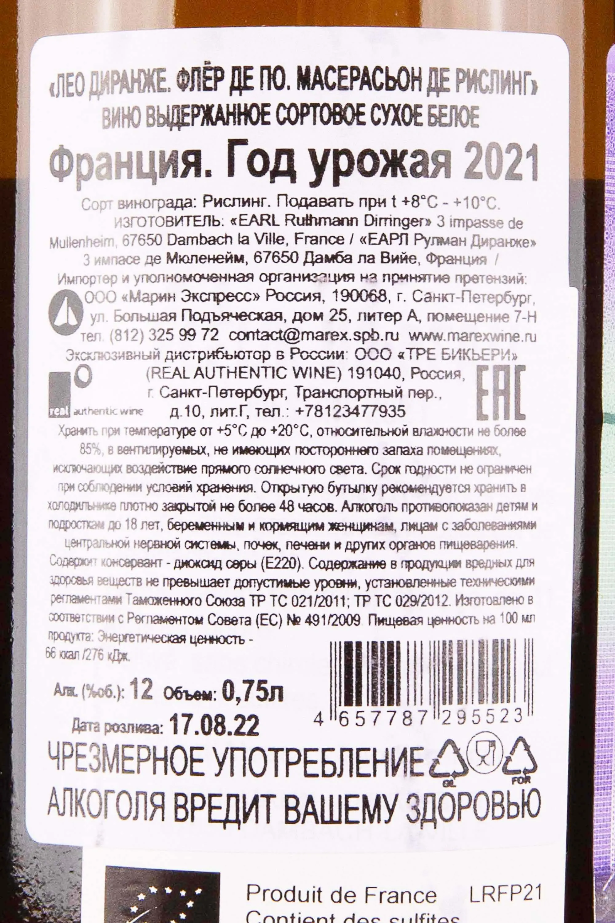 Лео Диранже Флёр де По Масерасьон де Рислинг 2021 0.75