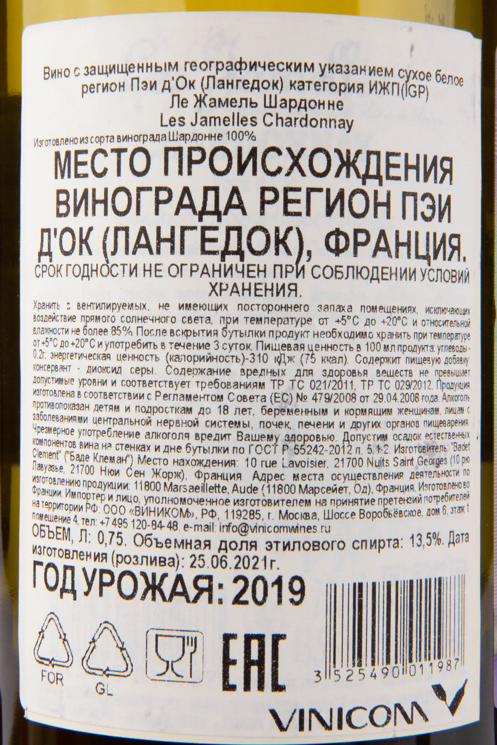 Les Jamelles Chardonnay 0.75 л купить - Французское вино Ле Жамель Шардоне цена в магазинег. Москва, ул. Профсоюзная, д. 16/1010:00-22:00 Ежедневно+7 (495) 920-20-02info@cru.ru