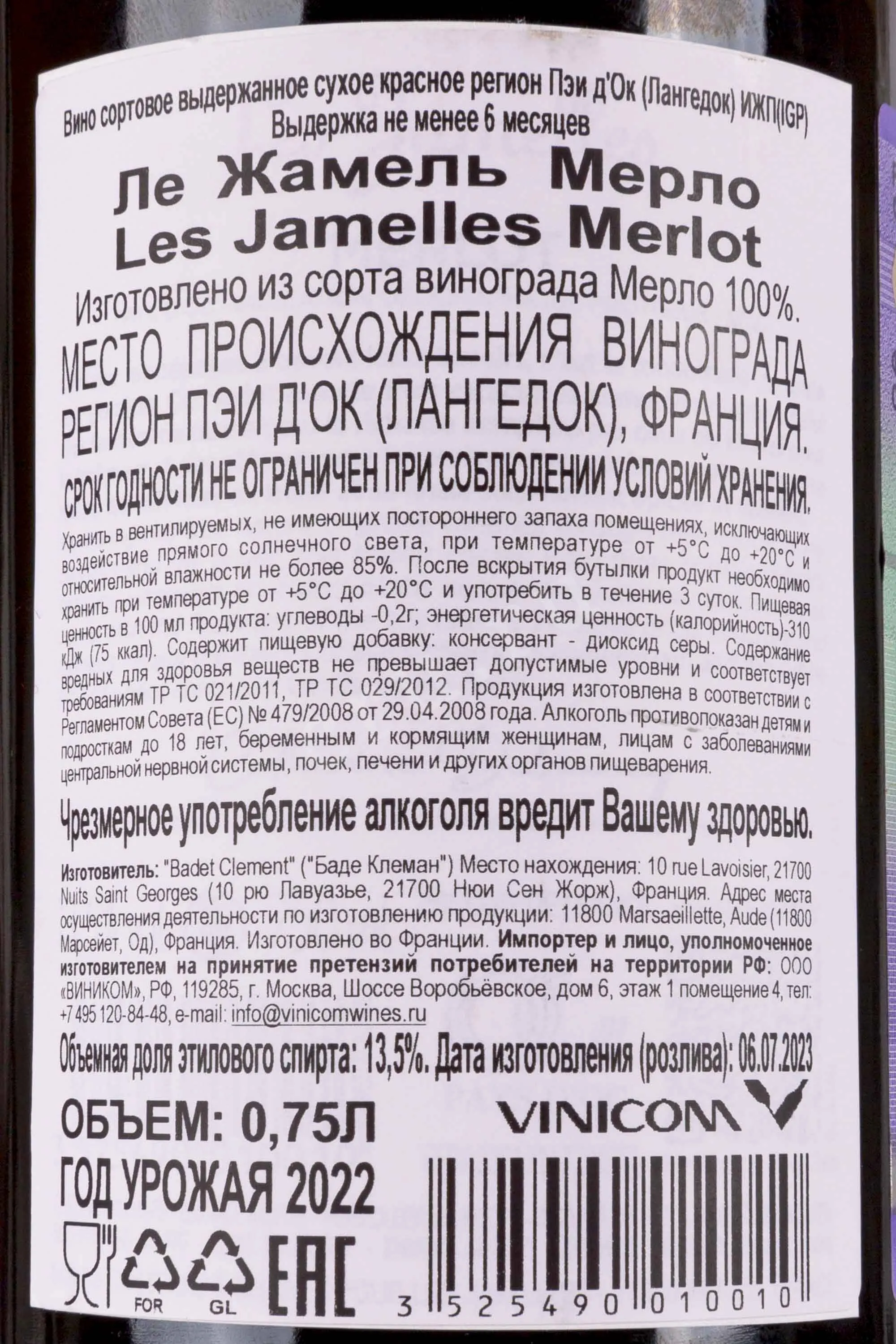 Les Jamelles Merlot 0.75 л купить - Французское вино Ле Жамель Мерло цена в магазинег. Москва, ул. Профсоюзная, д. 16/1010:00-22:00 Ежедневно+7 (495) 920-20-02info@cru.ru