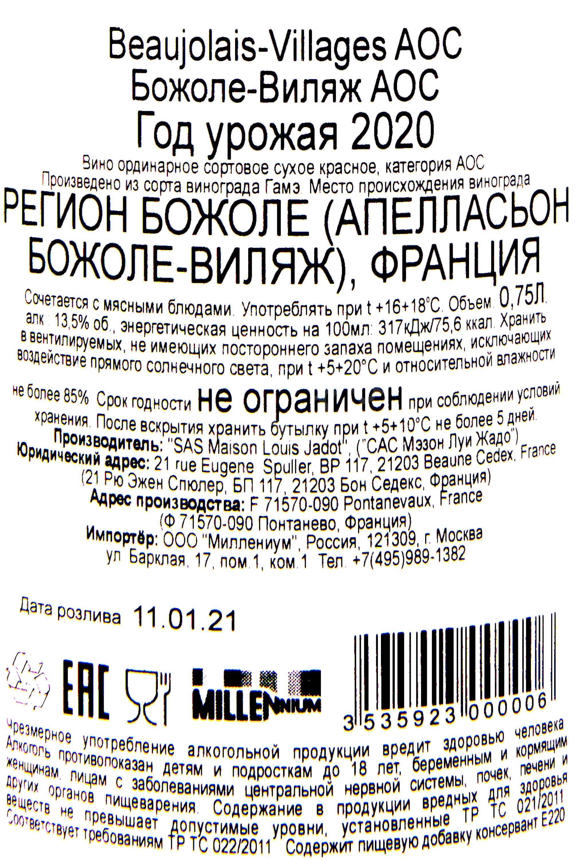 Божоле Вилляж АОС Луи Жадо 2020 0.75