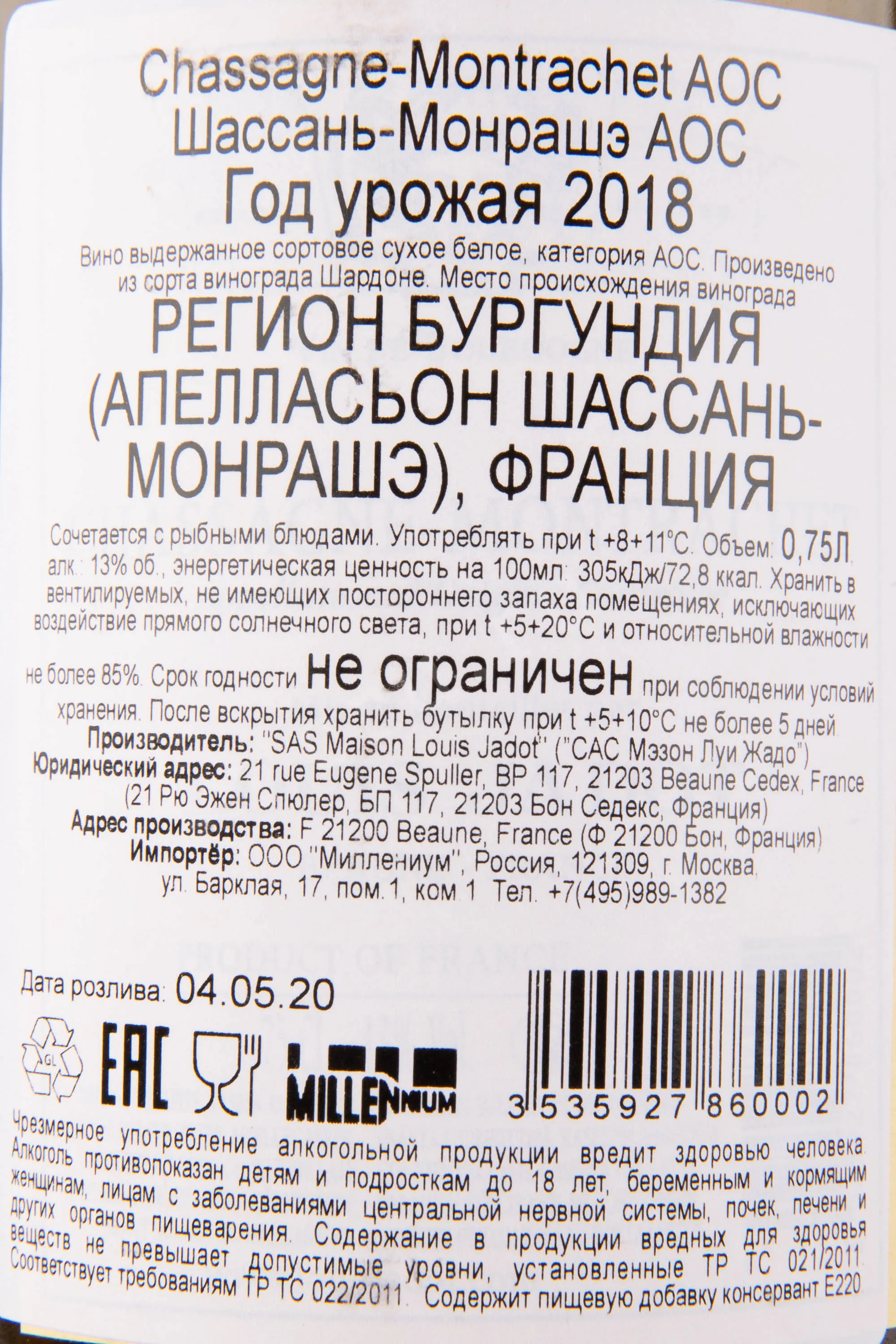 Louis Jadot Chassagne-Montrachet 2018 0.75 л купить - Французское вино Луи Жадо Шассань-Монтраше цена в магазинег. Москва, ул. Профсоюзная, д. 16/1010:00-22:00 Ежедневно+7 (495) 920-20-02info@cru.ru