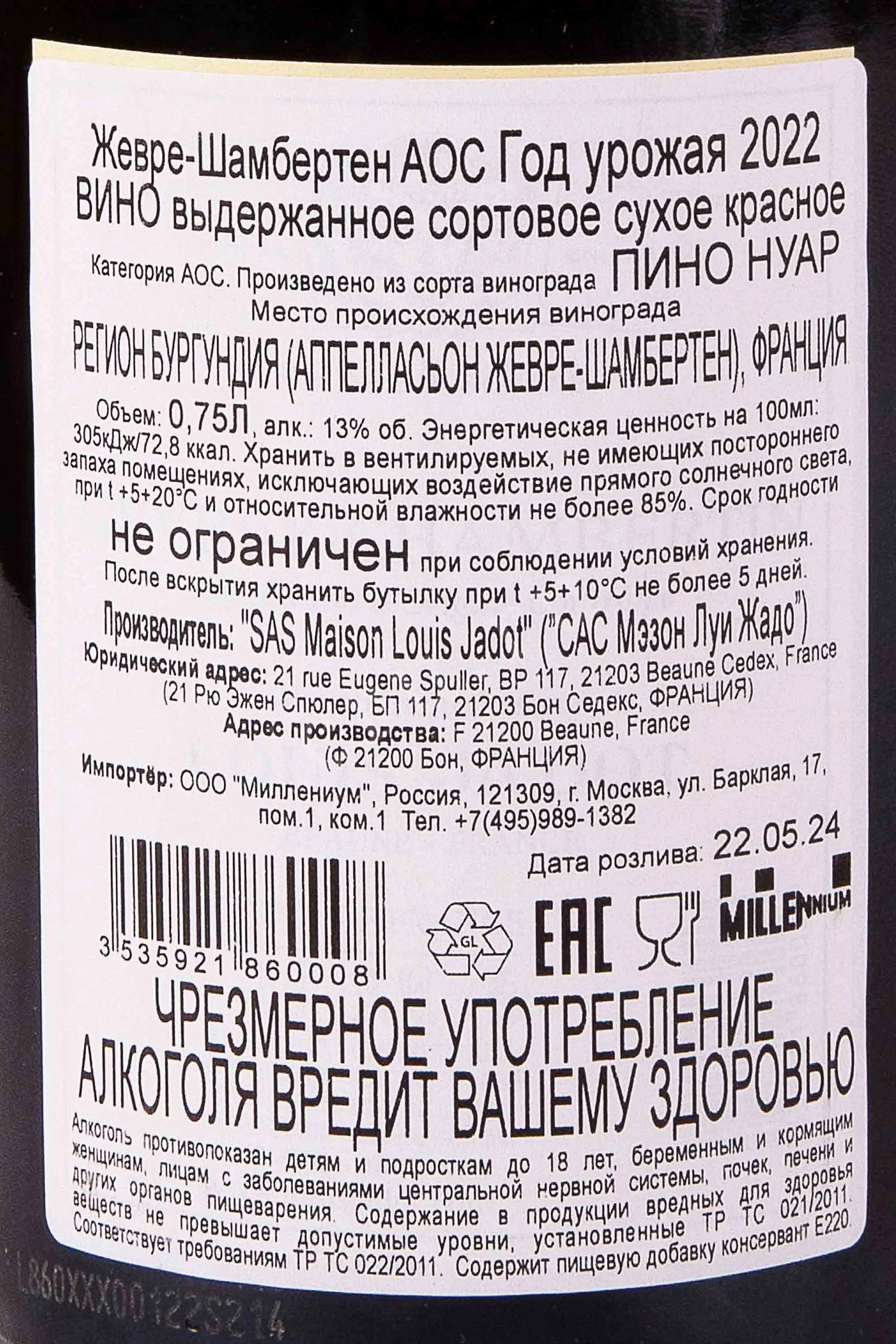 Louis Jadot Gevrey Chambertin 0.75 л купить - Французское вино Луи Жадо Жевре Шамбертен цена в магазинег. Москва, ул. Профсоюзная, д. 16/1010:00-22:00 Ежедневно+7 (495) 920-20-02info@cru.ru