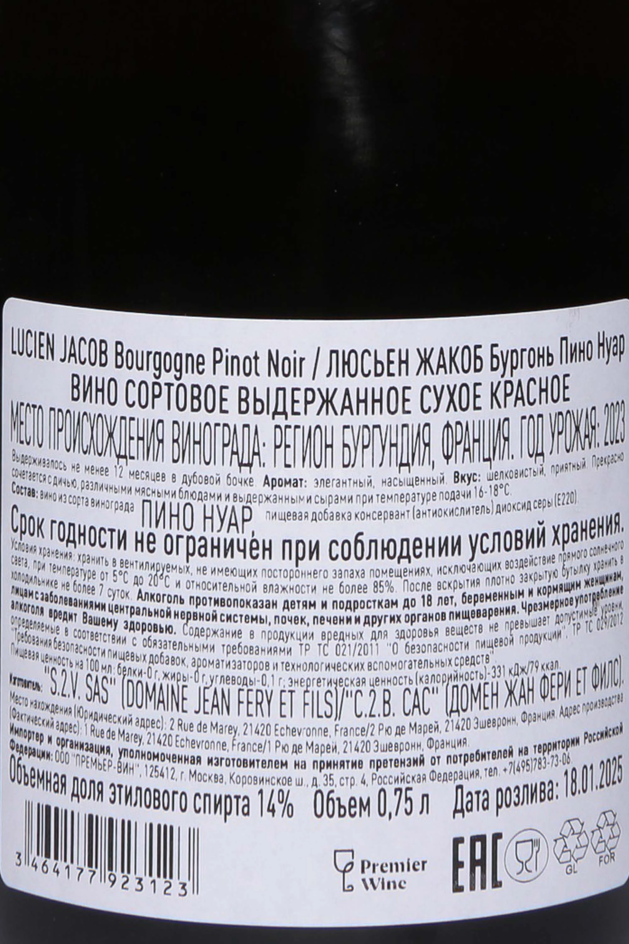 Красное сухое вино Lucien Jacob Pinot Noir Bourgogne AOC 2023 г. 0,75 л производится в Бургундии, в регионе, где сорт Пино Нуар обрел мировую известность. Виноградники расположены на холмах с известняковыми и глинисто-мергельными почвами, богатым минеральным составом и хорошим дренажом. Климат здесь умеренно-континентальный с прохладными ночами и теплым летом, что способствует формированию в ягодах тонкого аромата и естественной кислотности. Сезон сочетал в себе достаточное количество солнечных и дождливых периодов, благодаря чему плоды достигли идеальной зрелости. Производство было основано на традиционной технологии: ручной сбор, ферментация в стальных емкостях с контролем температуры, затем краткая выдержка в дубовых бочках, которая добавила глубину и мягкие древесные мотивы.
