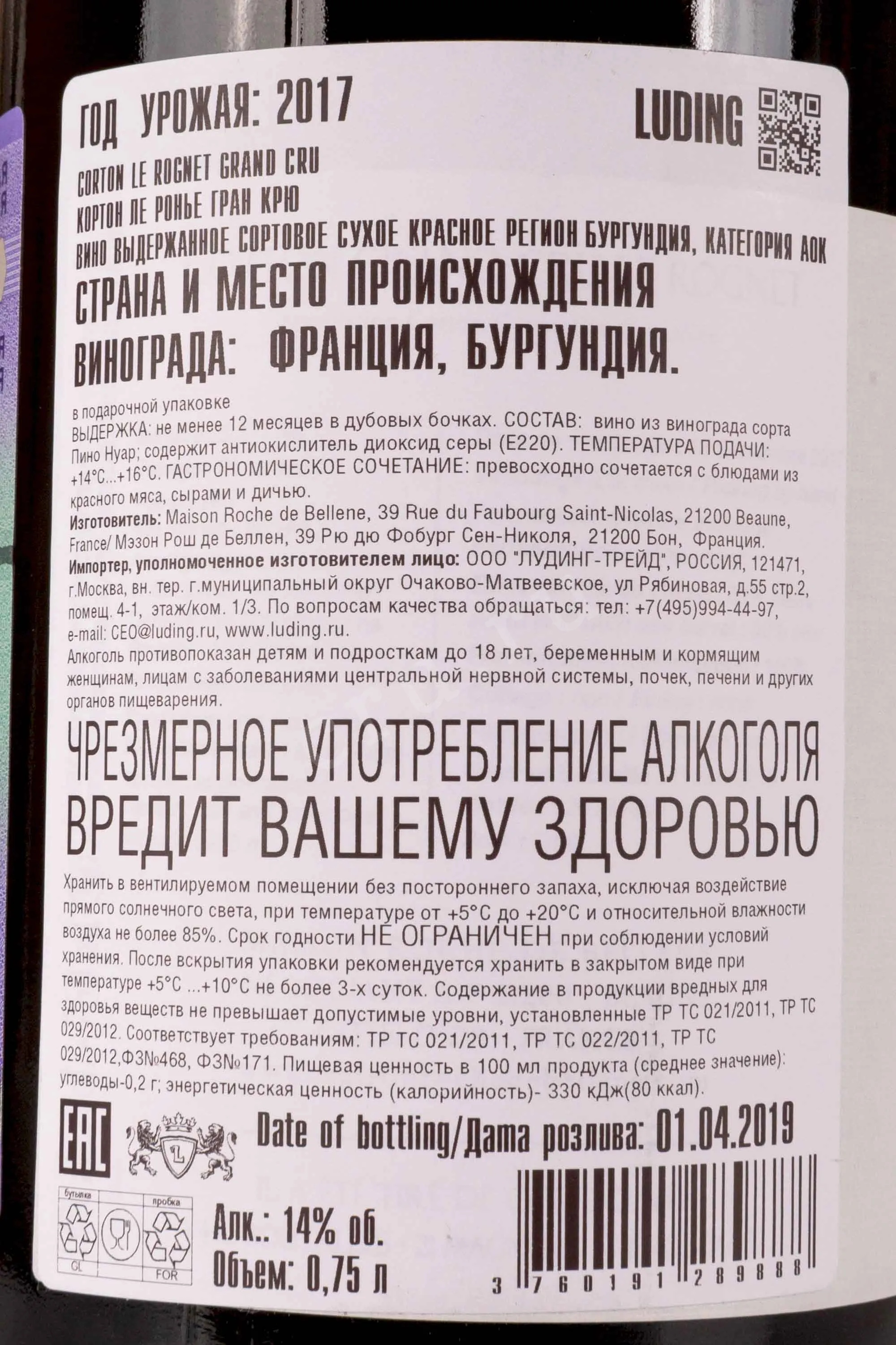 Мэзон Рош де Беллен Кортон Ле Ронье Гран Крю в деревянной упаковке 2017 0.75