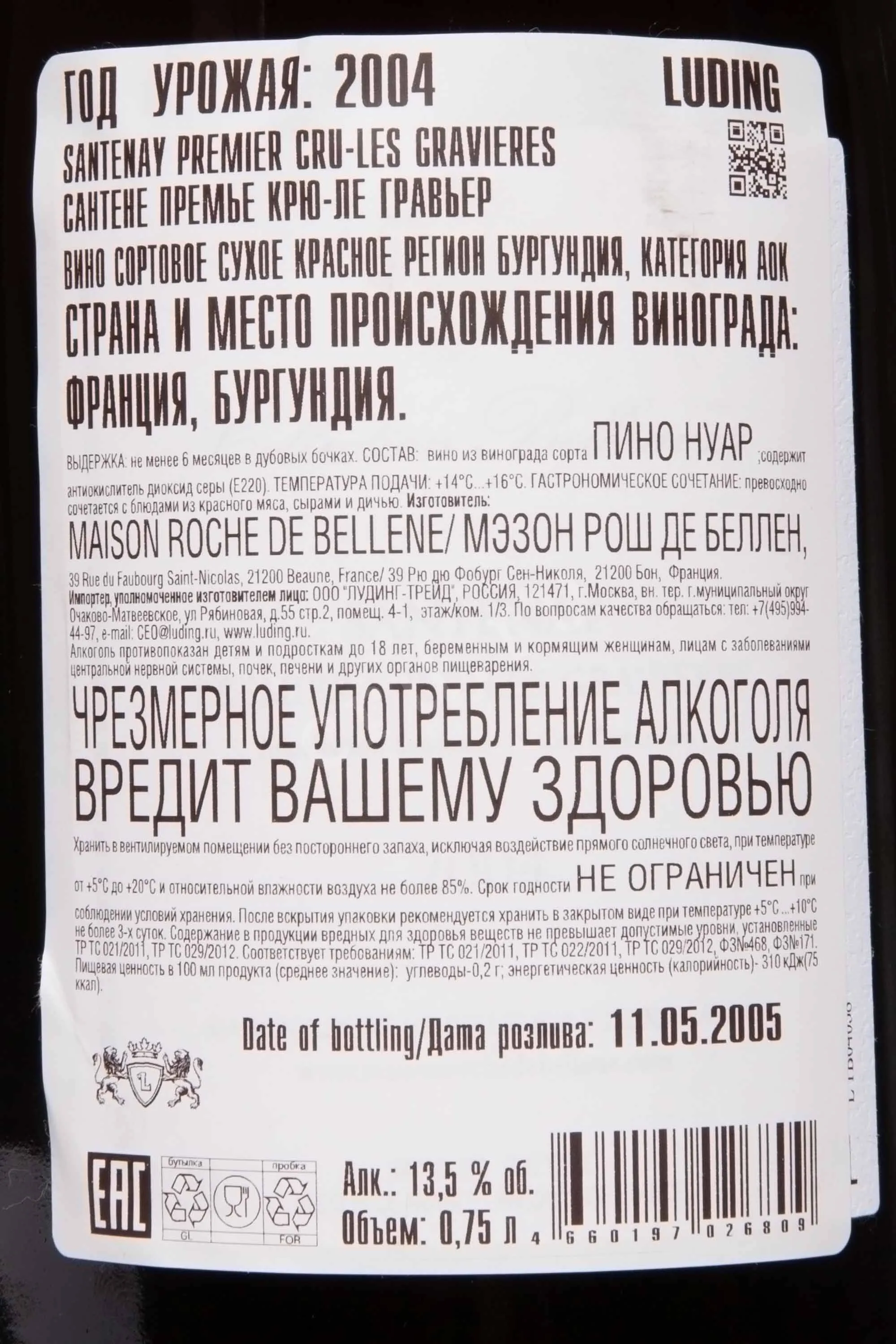 Мэзон Рош де Беллен Сантене Премье Крю Ле Гравьер АОК 2004 0.75