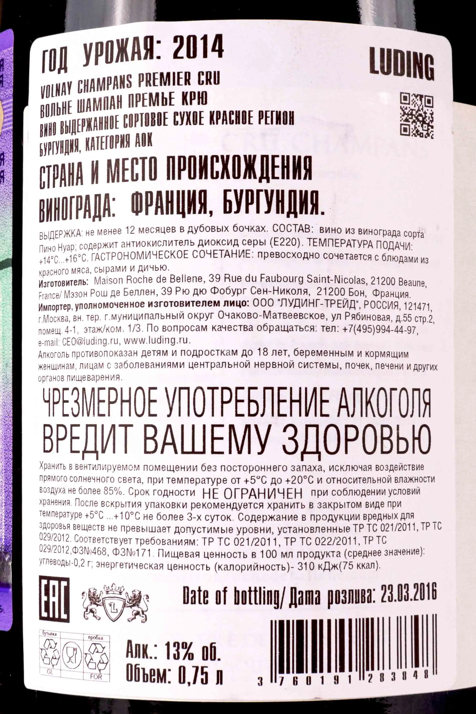 Мэзон Рош де Беллен Вольне Шампань Премье Крю 2014 0.75