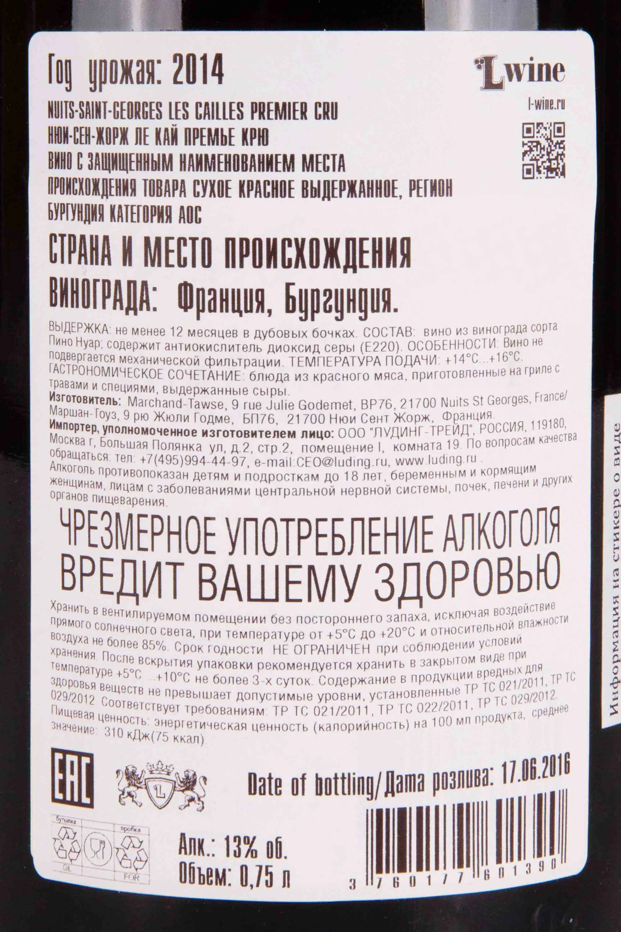 Marchand-Tawse Nuits-Saint-Georges 1-er Cru Les Cailles 0.75 л купить - Французское вино Маршан-Тоуз Нюи-Сен-Жорж Премье Крю Ле Кай цена в магазинег. Москва, ул. Профсоюзная, д. 16/1010:00-22:00 Ежедневно+7 (495) 920-20-02info@cru.ru
