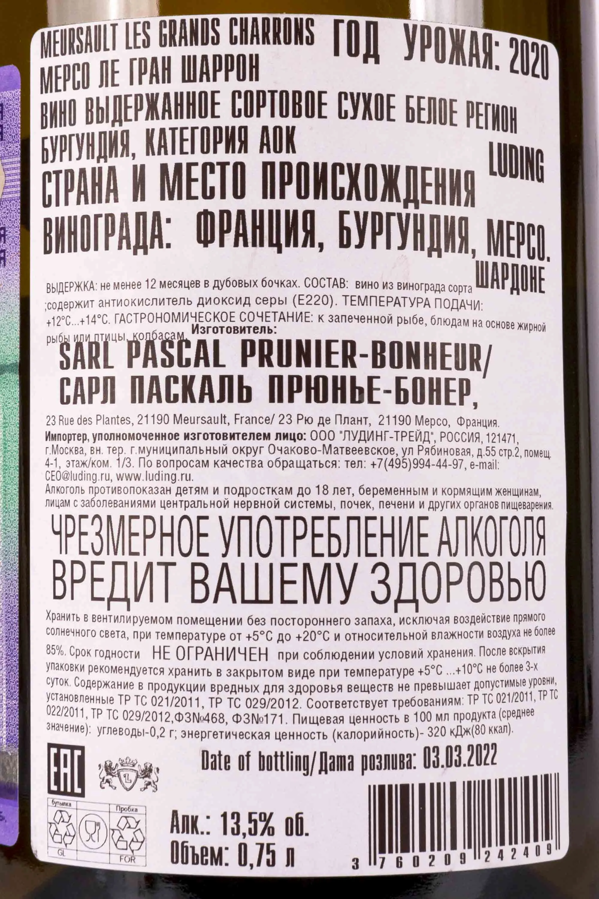 Паскаль Прюнье-Бонер Мерсо Ле Гран Шаррон 2020 0.75
