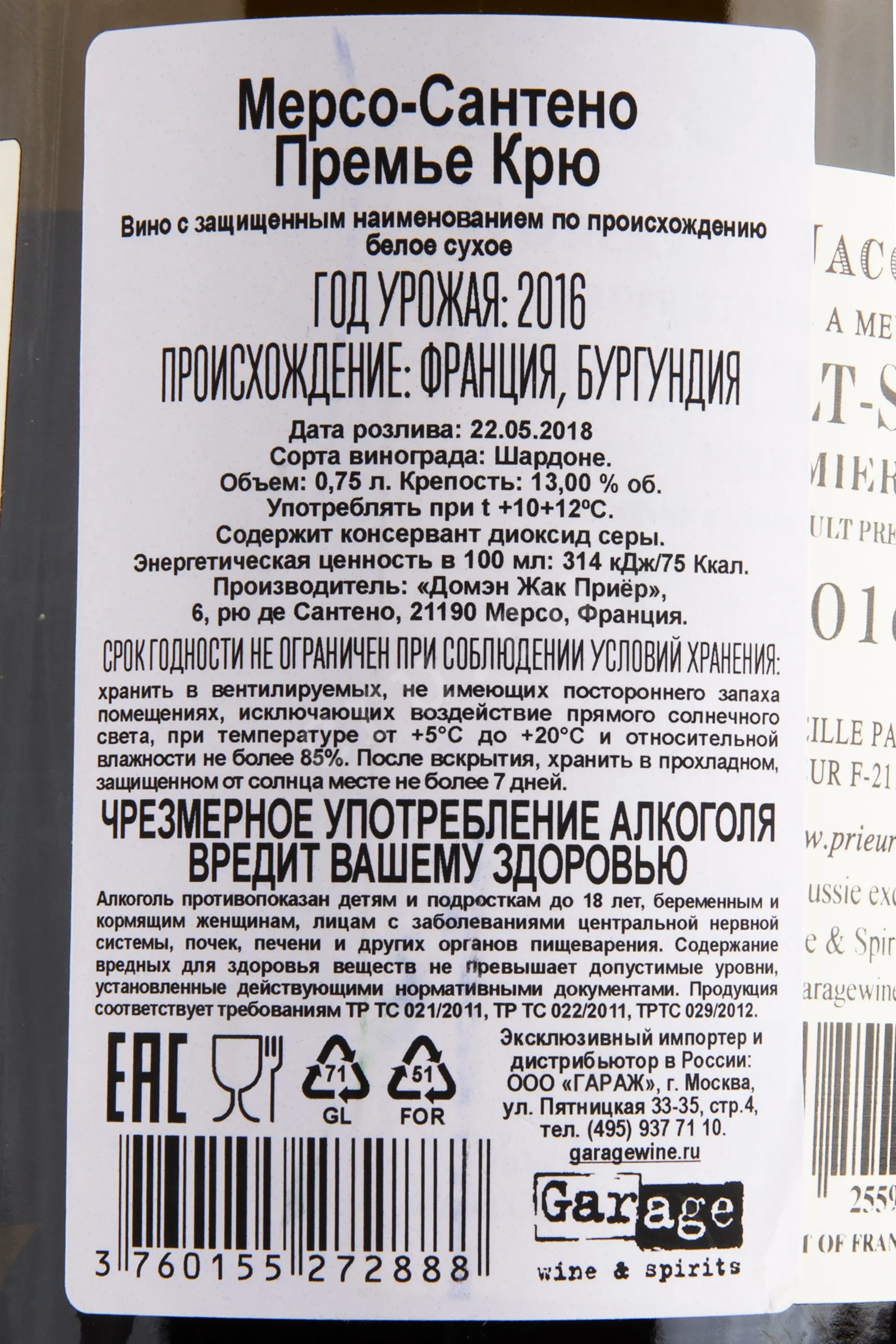 Meursault-Santenots Premier Cru 2016 0.75 л купить - Французское вино Морсе Сантено Премье Крю Домэн цена в магазинег. Москва, ул. Профсоюзная, д. 16/1010:00-22:00 Ежедневно+7 (495) 920-20-02info@cru.ru