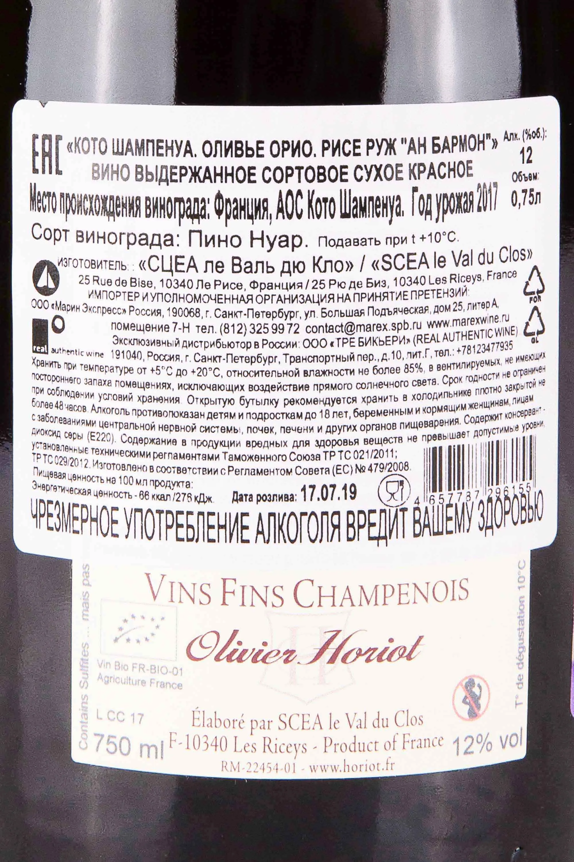 Оливье Орио Ан Бармон Рисе Руж Кото Шампенуа 2017 0.75