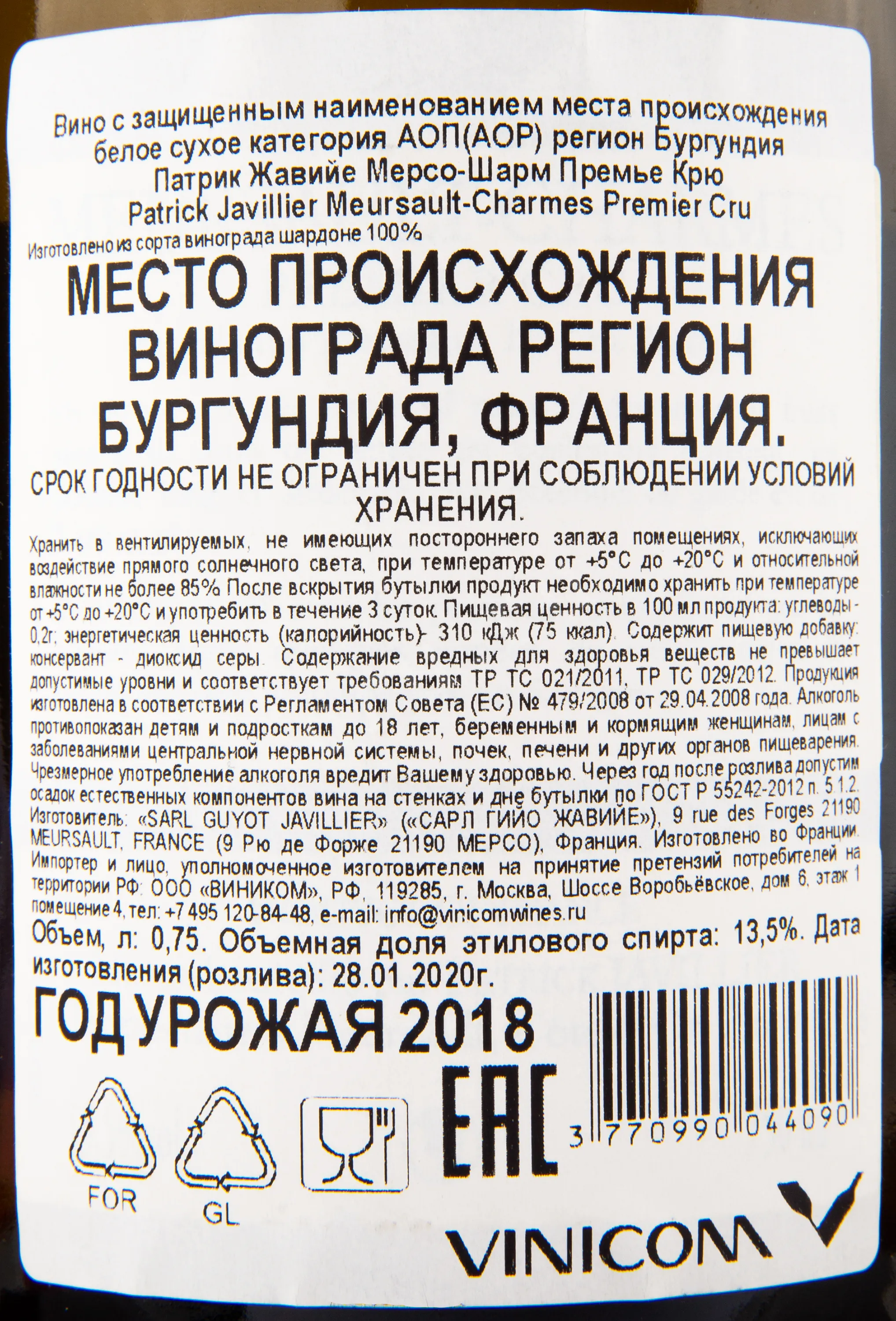 Patrick Javillier Meursault-Charmes Premier Cru 2018 0.75 л купить - Французское вино Патриж Жавийе Мерсо-Шарм Премье Крю цена в магазинег. Москва, ул. Профсоюзная, д. 16/1010:00-22:00 Ежедневно+7 (495) 920-20-02info@cru.ru