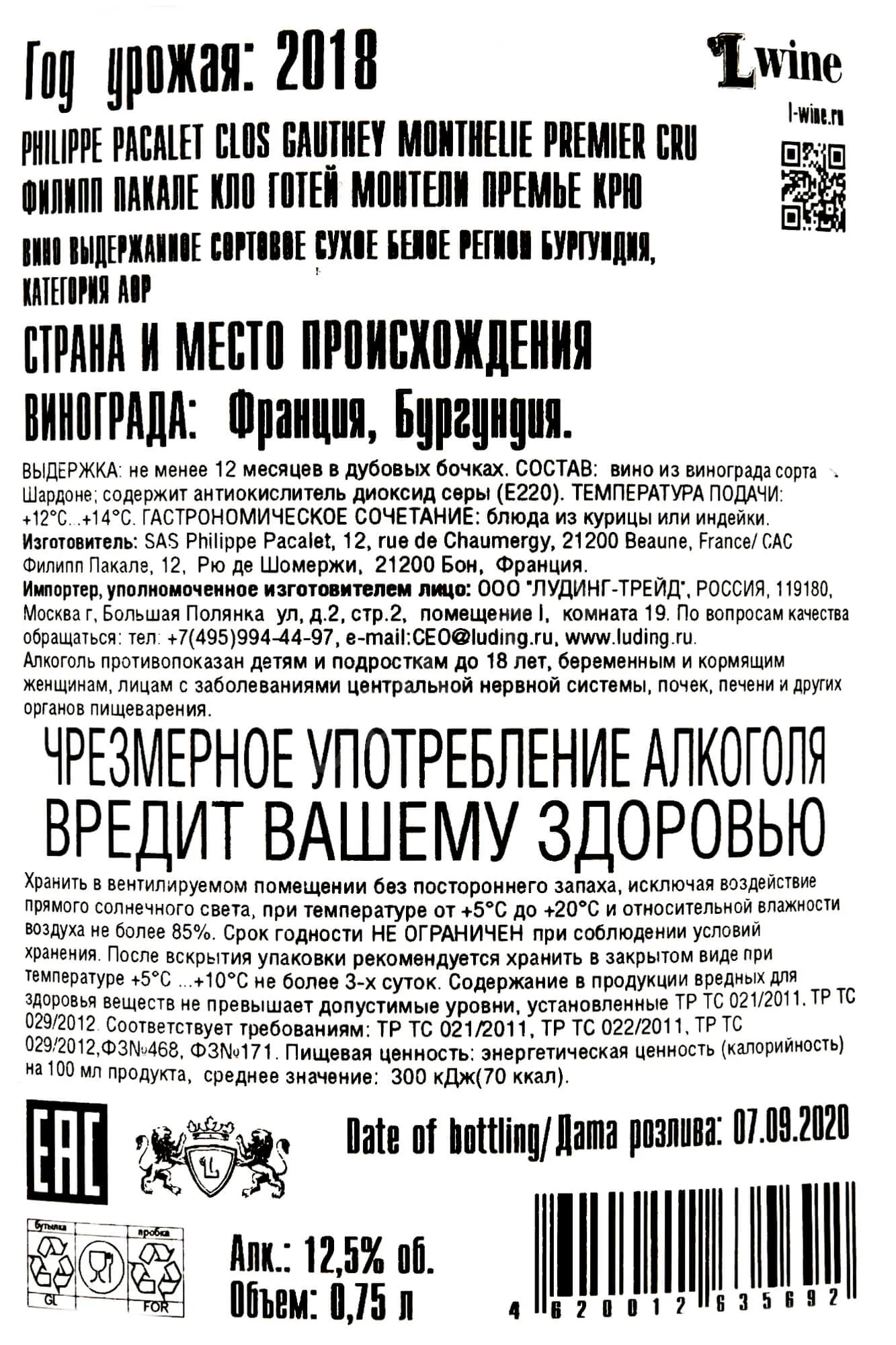 Philippe Pacalet Clos Gauthey Monthelie 1er Cru 2018 0.75 л купить - Французское вино Филипп Пакале Кло Готей Монтели Премье Крю цена в магазине г. Москва, ул. Профсоюзная, д. 16/10 10:00-22:00 Ежедневно +7 (495) 920-20-02 info@cru.ru