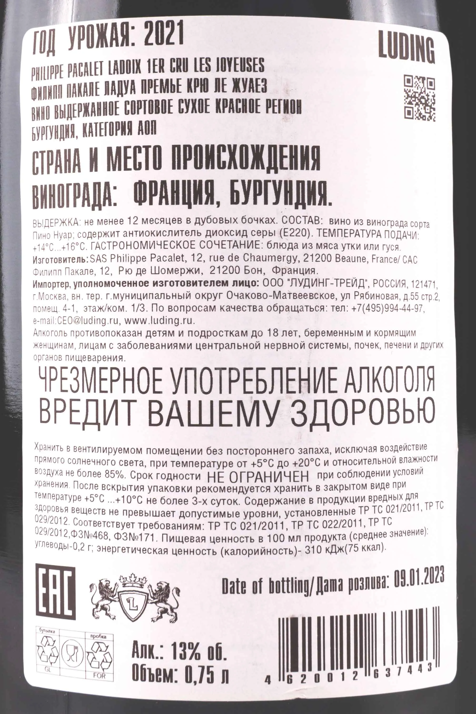 Philippe Pacalet Ladoix 1er Cru Les Joyeuses 0.75 л купить - Французское вино Филипп Пакале Ладуа Премье Крю Ле Жуаез цена в магазине г. Москва, ул. Профсоюзная, д. 16/10 10:00-22:00 Ежедневно +7 (495) 920-20-02 info@cru.ru