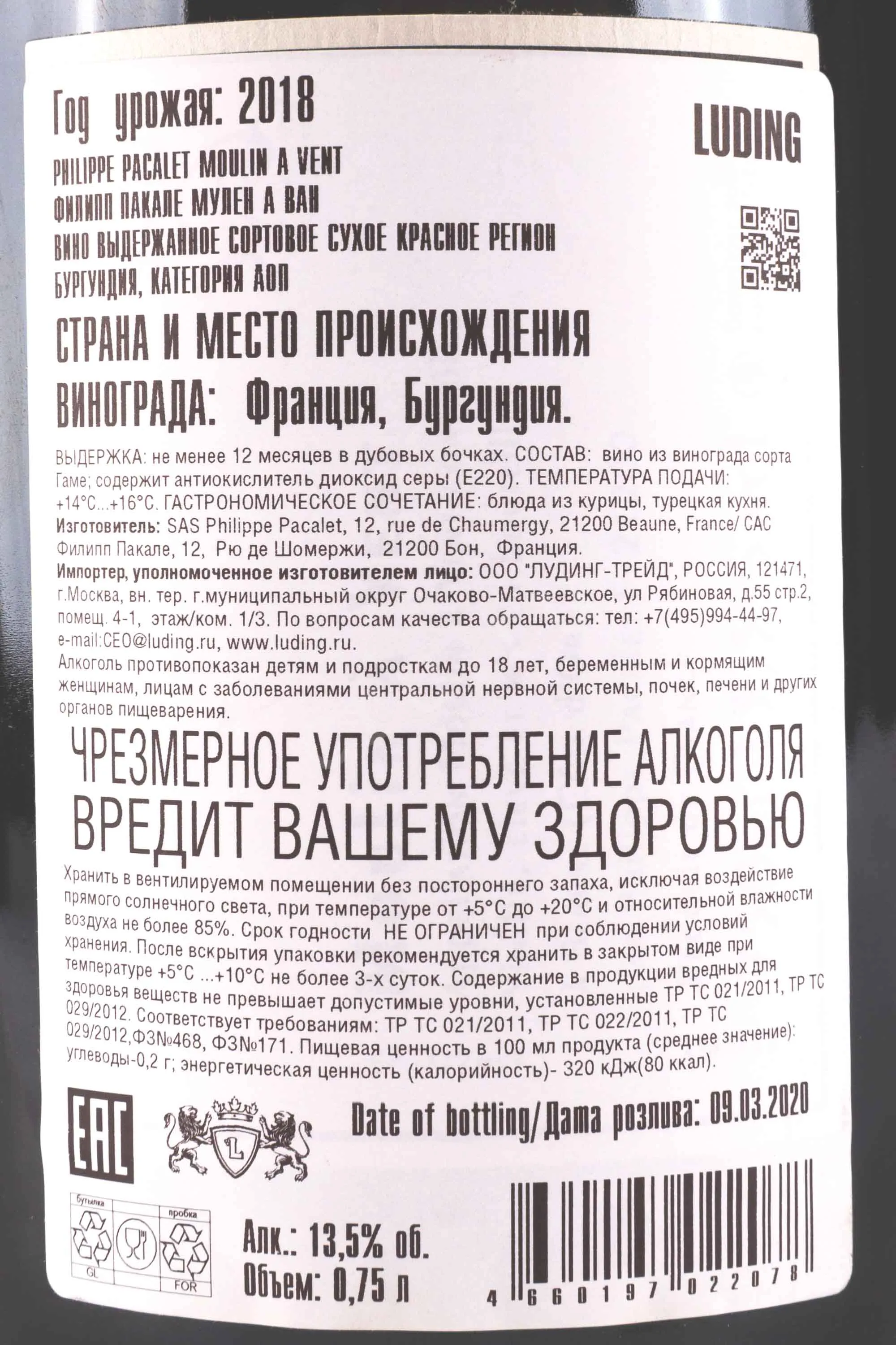 Philippe Pacalet Moulin a Vent 0.75 л купить - Французское вино Филипп Пакале Мулен А Ван цена в магазине г. Москва, ул. Профсоюзная, д. 16/10 10:00-22:00 Ежедневно +7 (495) 920-20-02 info@cru.ru