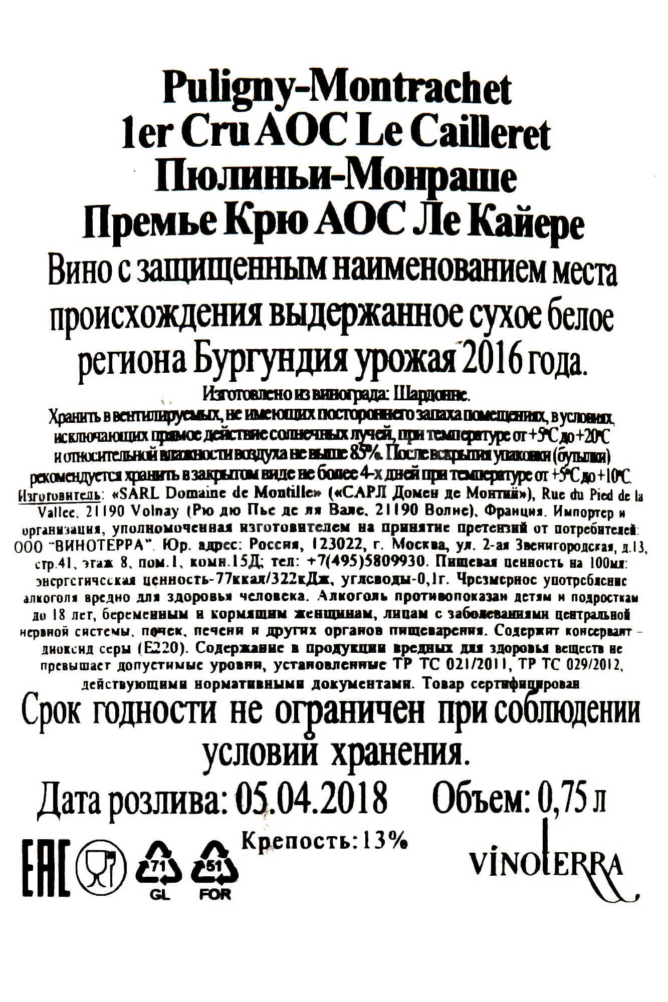 Puligny-Montrachet Premier Cru AOC Les Caileret 2016 0.75 л купить - Французское вино Пюлиньи-Монраше Премье Крю АОС Ле Кайере цена в магазинег. Москва, ул. Профсоюзная, д. 16/1010:00-22:00 Ежедневно+7 (495) 920-20-02info@cru.ru