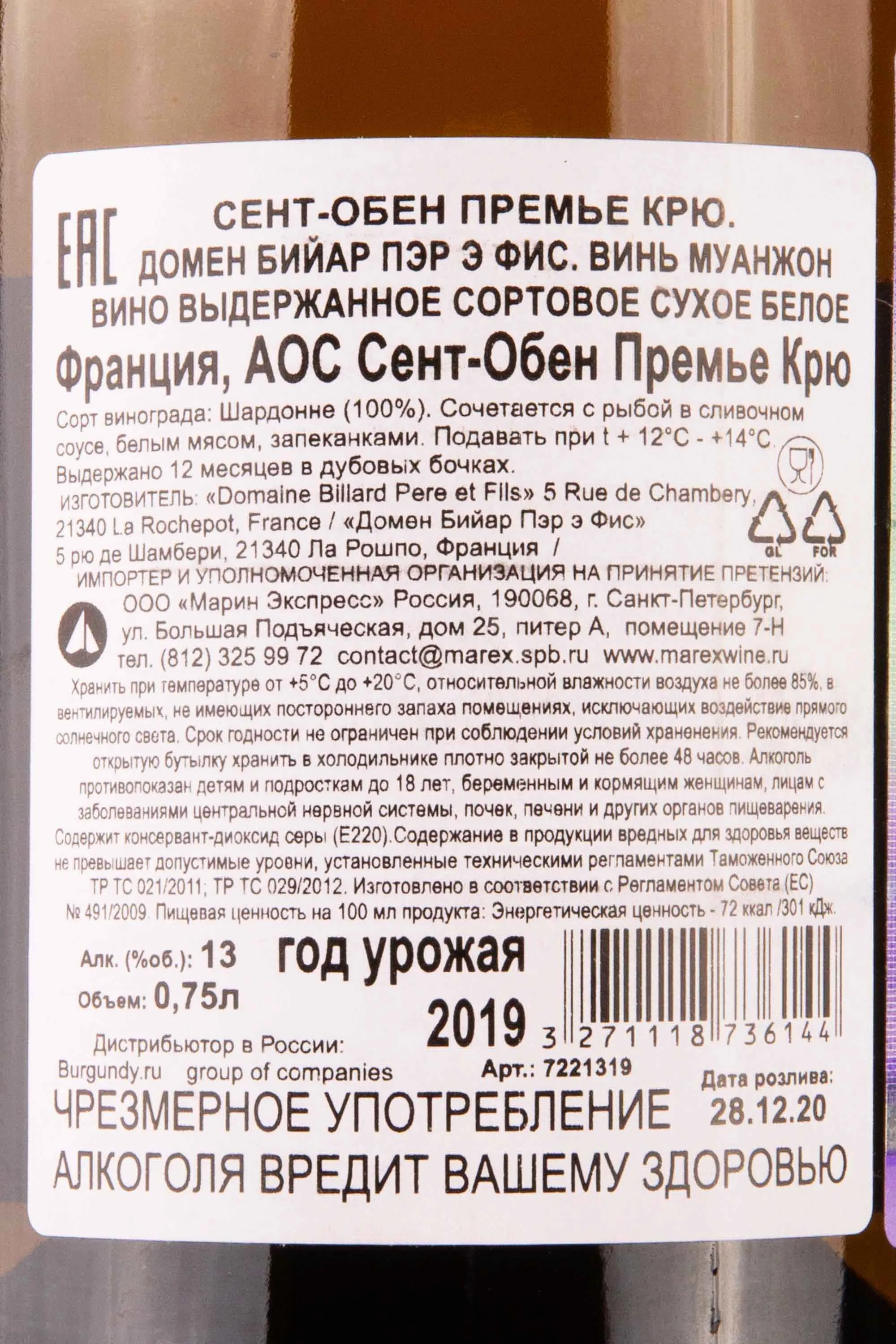 Saint-Aubin 1er Cru AOC Domaine Billard Pere et Pils Vignes Moingeon 2019 0.75 л купить - Французское вино Сент-Обен Премье Крю Домен Бийар Пэр э Фис Винь Муанжон цена в магазинег. Москва, ул. Профсоюзная, д. 16/1010:00-22:00 Ежедневно+7 (495) 920-20-02info@cru.ru