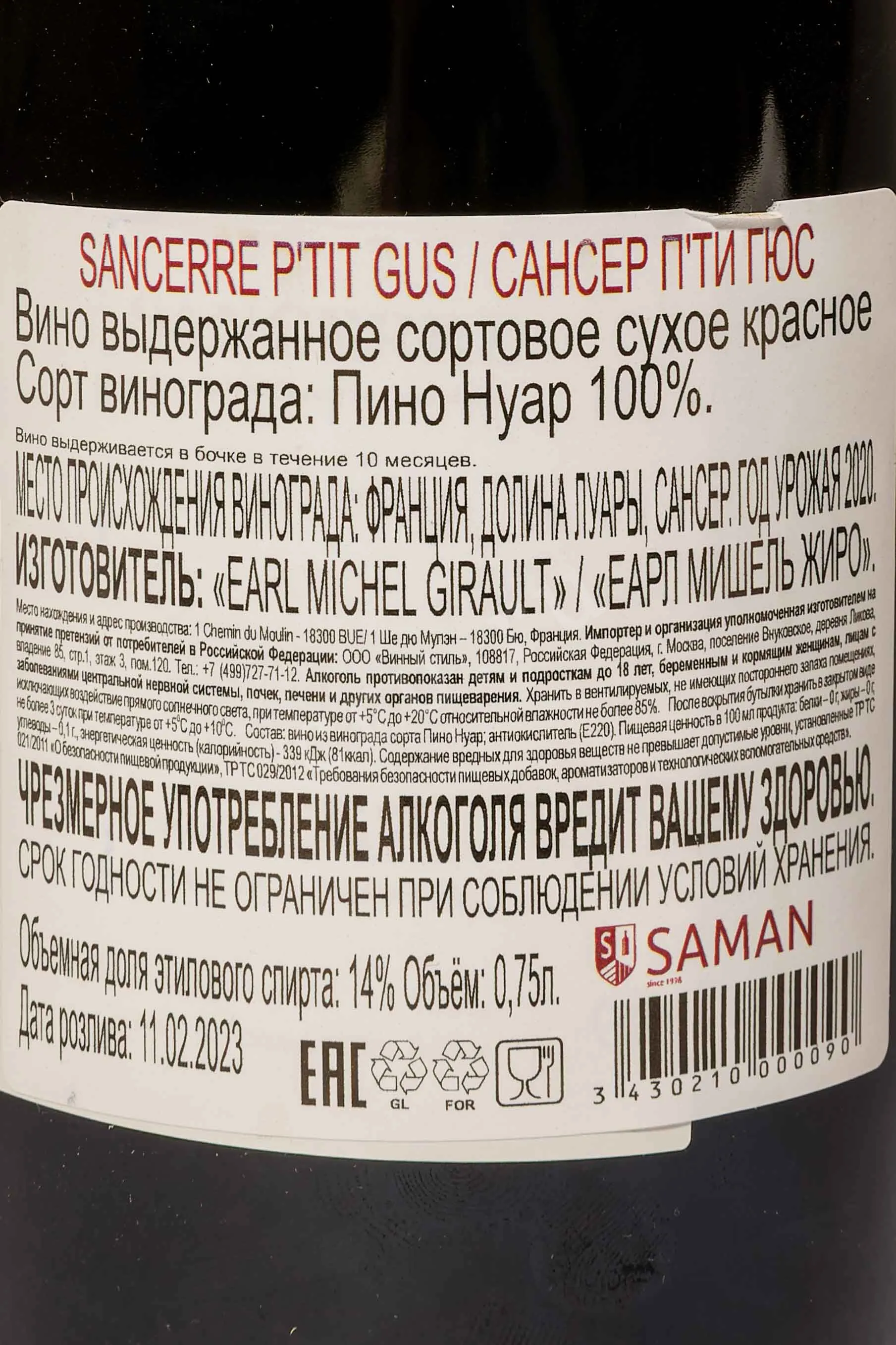 Michel Girault Sancerre Ptit Gus 0.75 л купить - Французское вино Мишель Жиро Сансер П`ти Гюс цена в магазинег. Москва, ул. Профсоюзная, д. 16/1010:00-22:00 Ежедневно+7 (495) 920-20-02info@cru.ru