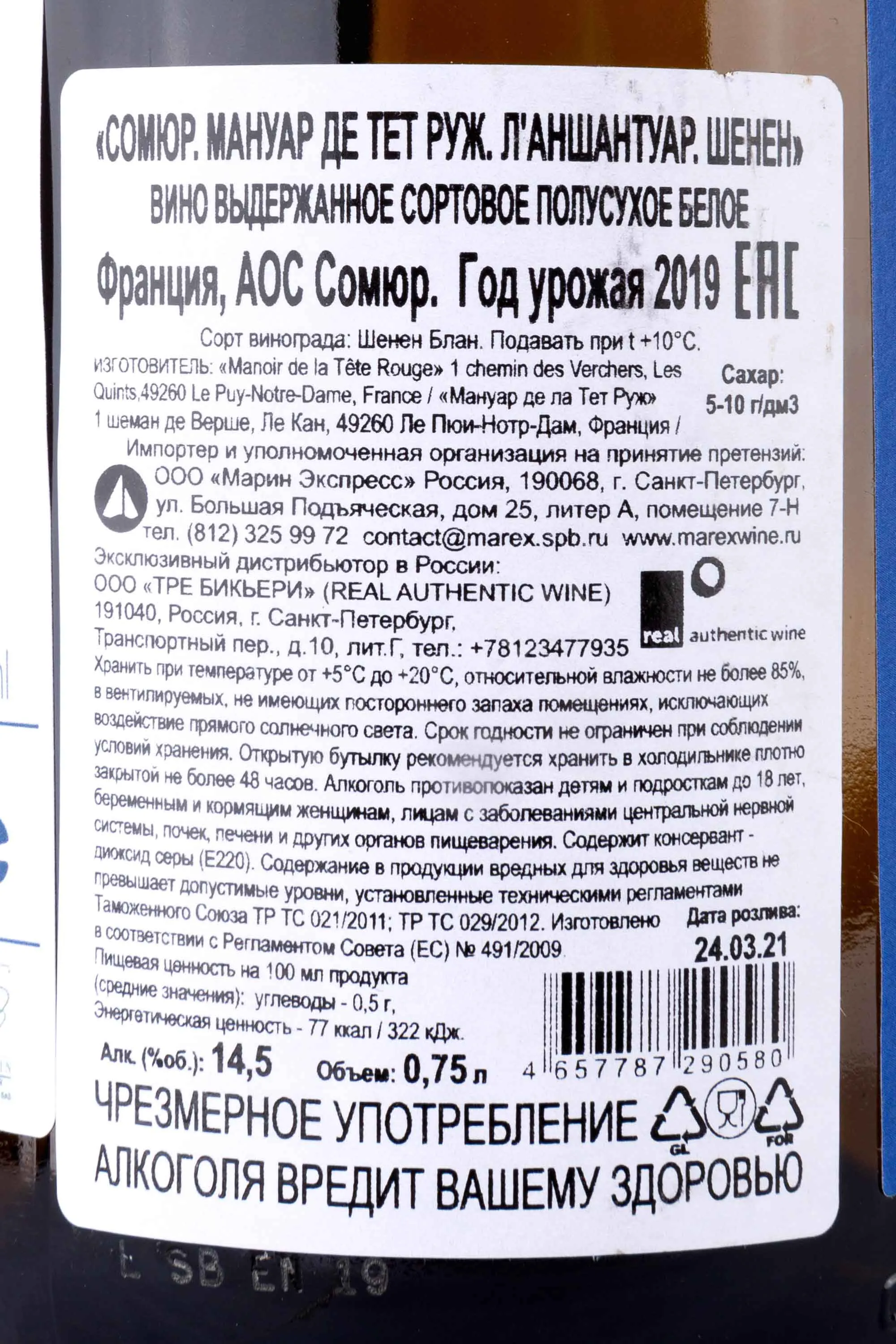 Saumur Manoir de la Tete Rouge l'Enchentoir 0.75 л купить - Французское вино Сомюр Мануар де Тет Руж. Л’Аншантуар цена в магазинег. Москва, ул. Профсоюзная, д. 16/1010:00-22:00 Ежедневно+7 (495) 920-20-02info@cru.ru