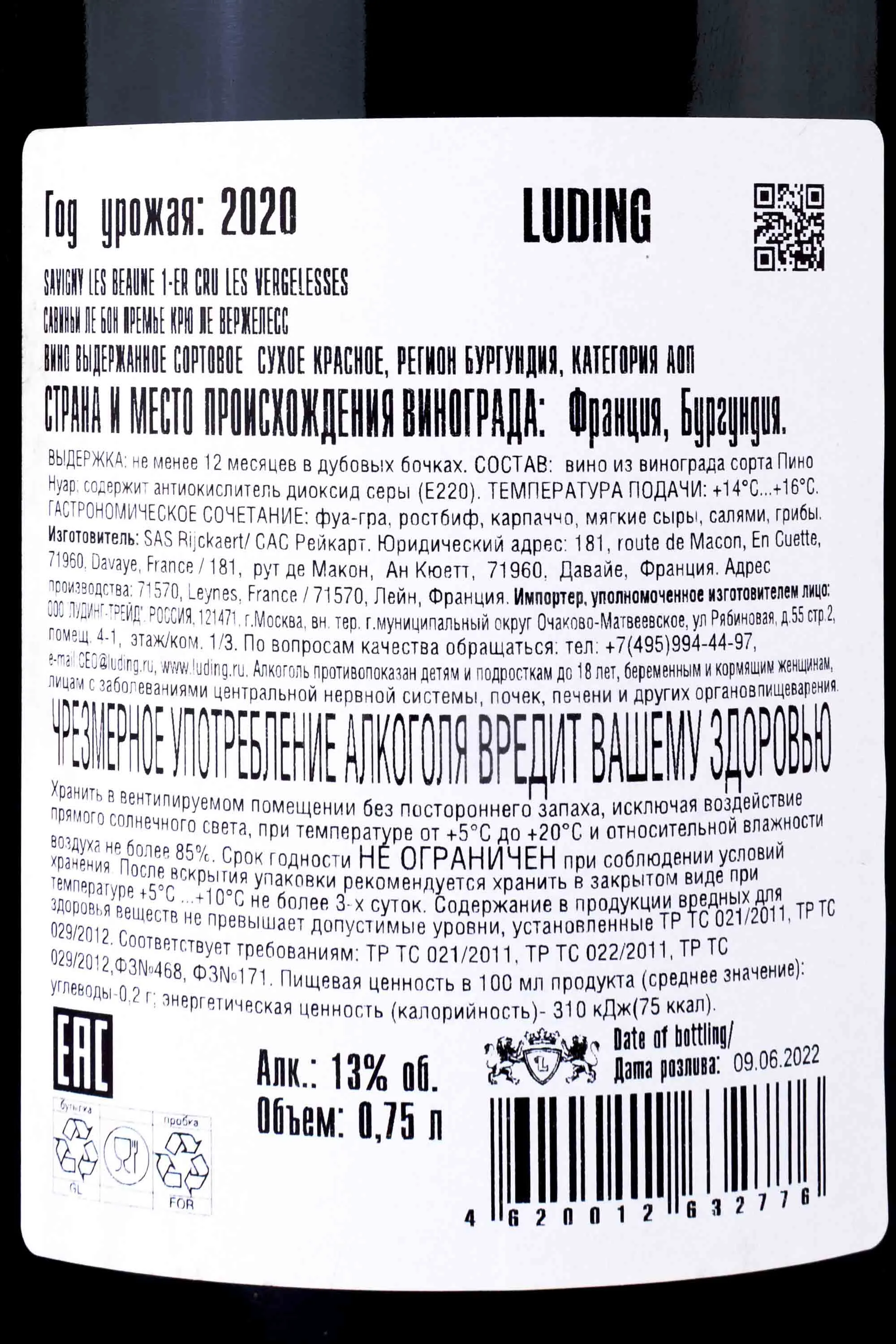 Вино Savigny Les Beaune 1-er Cru Les Vergelesses Rijckaert 2020 0.75 л