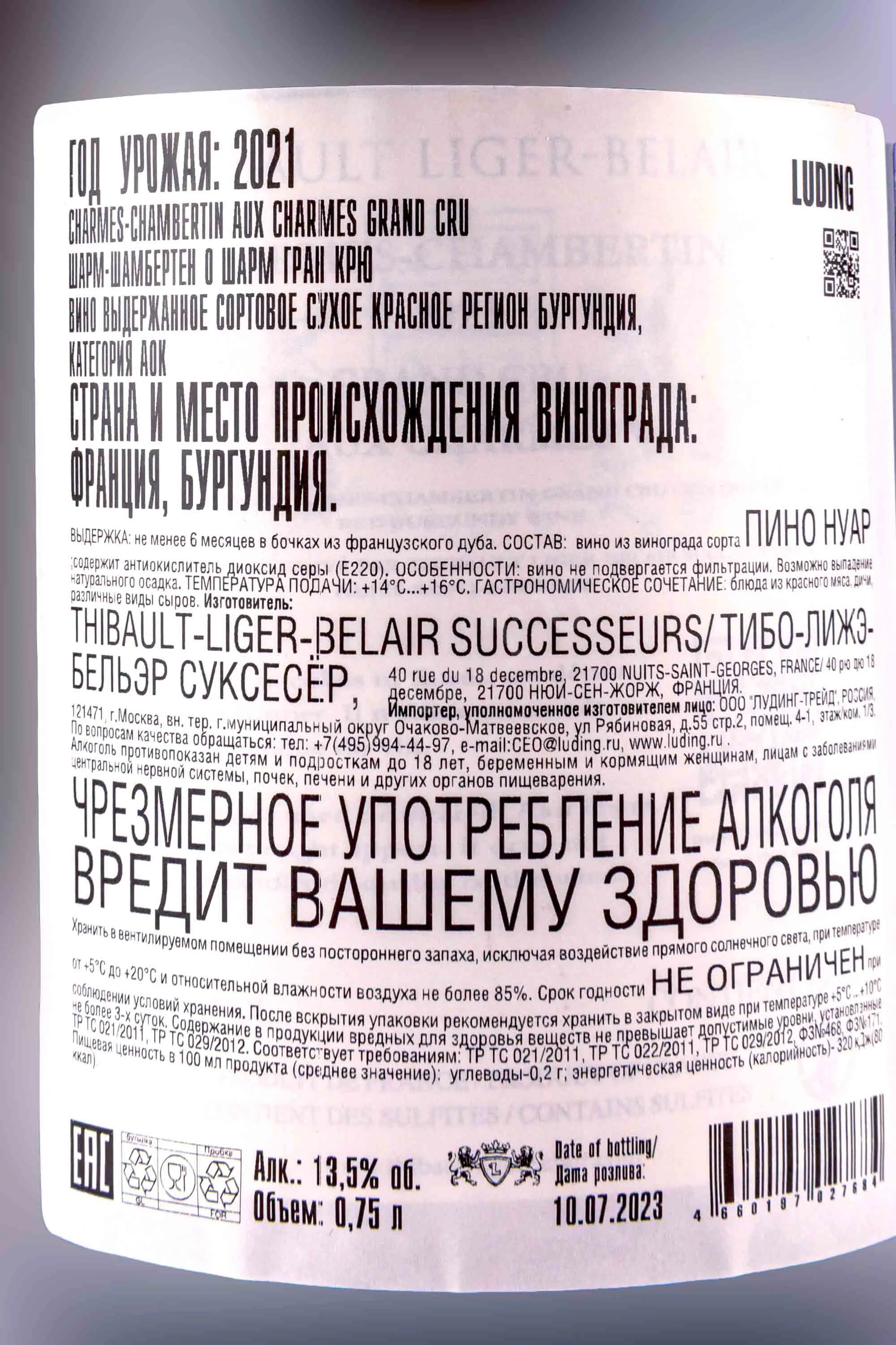 Thibault Liger-Belair Charmes-Chambertin Grand Cru Aux Charmes 2021 0.75 л купить - Французское вино Тибо Лижэ-Бельэр Шарм-Шамбертен Гран Крю О Шарм цена в магазине г. Москва, ул. Профсоюзная, д. 16/10 10:00-22:00 Ежедневно +7 (495) 920-20-02 info@cru.ru