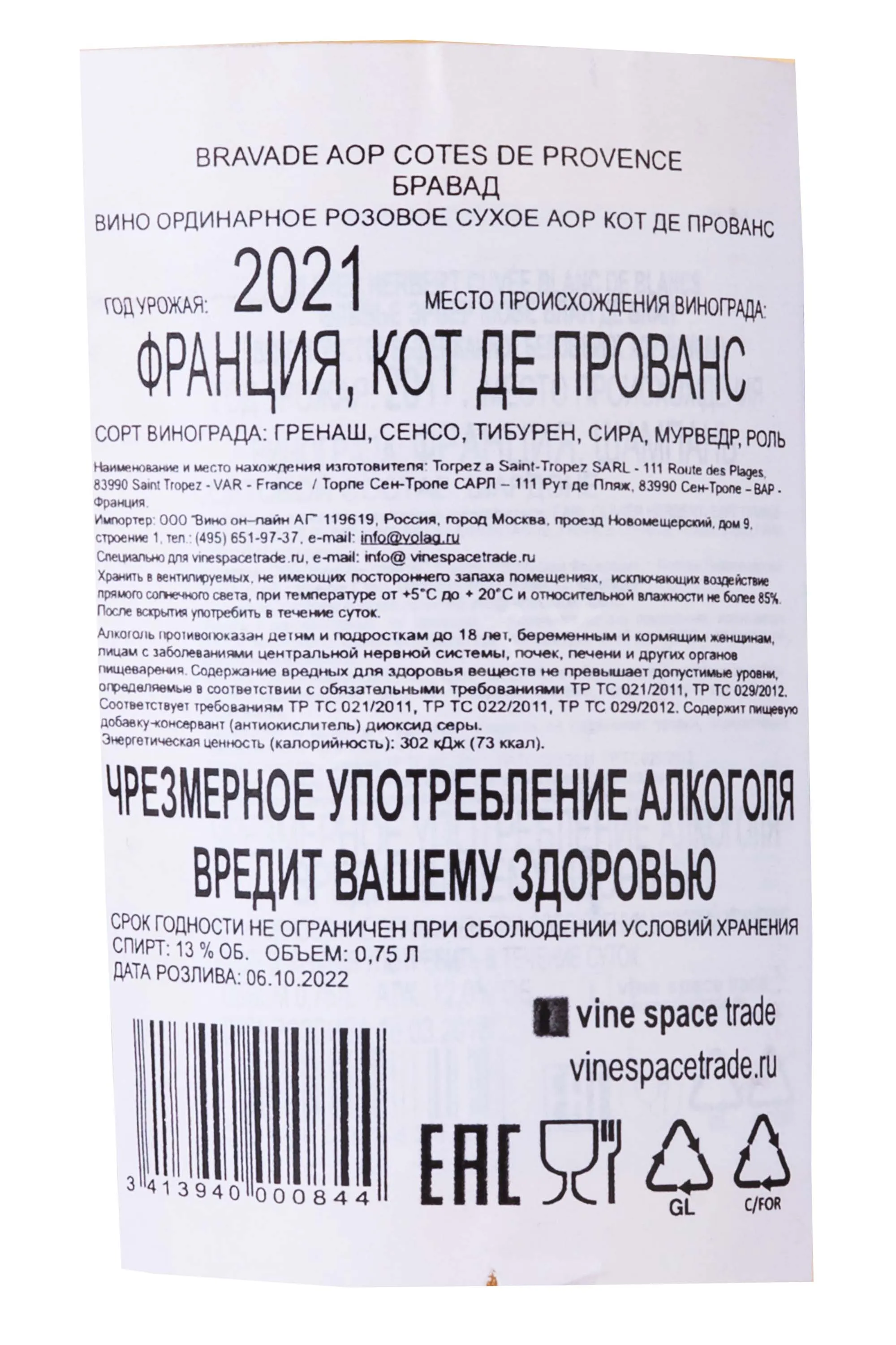 Torpes Bravade Cotes De Provence 0.75 л купить - Французское вино Торпез Бравад Кот де Прованс цена в магазине г. Москва, ул. Профсоюзная, д. 16/10 10:00-22:00 Ежедневно +7 (495) 920-20-02 info@cru.ru