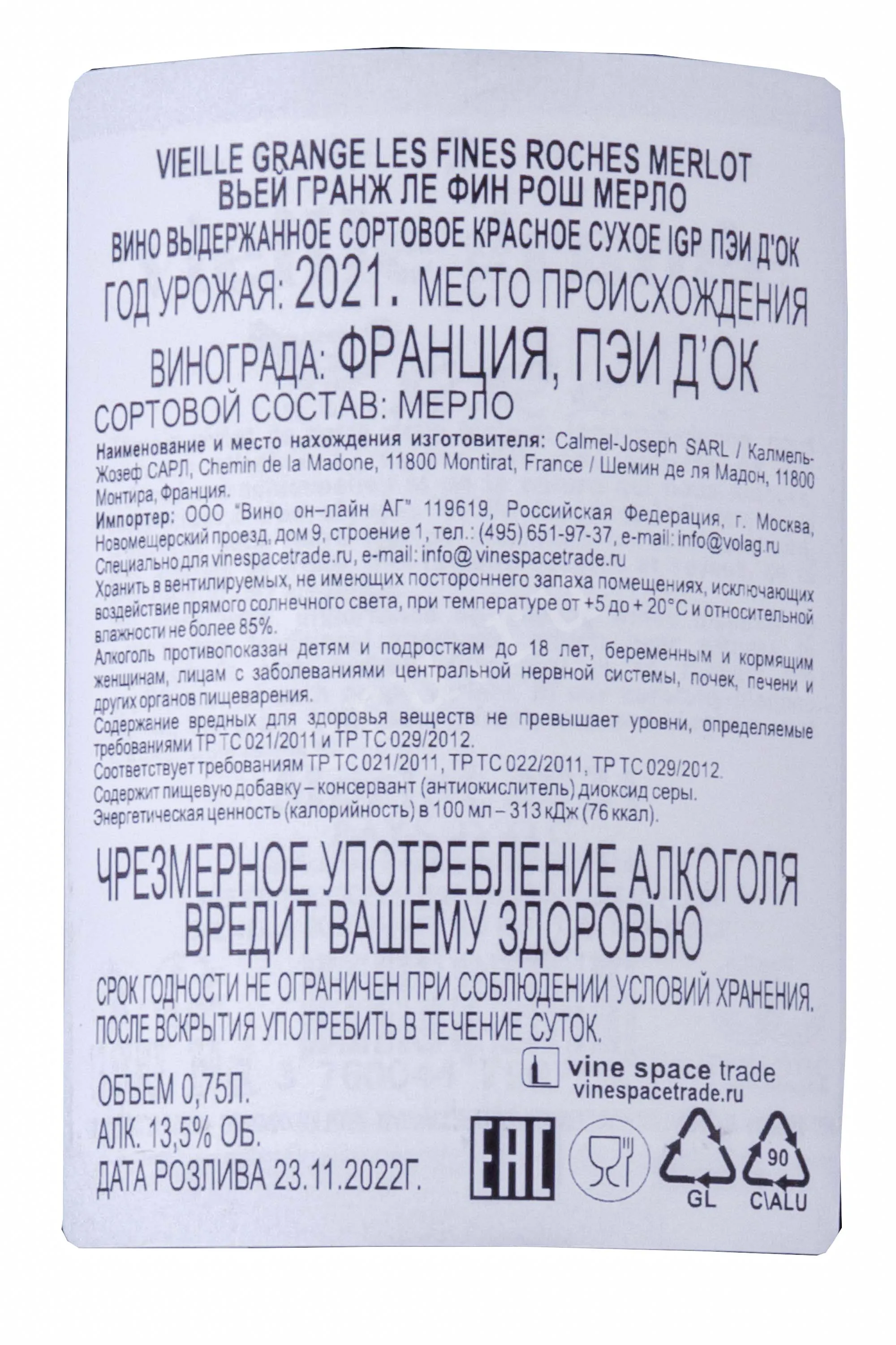 Vieille Grange Les Fines Roches Merlot 0.75 л купить - Французское вино Вьей Гранж Ле Фин Рош Мерло цена в магазинег. Москва, ул. Профсоюзная, д. 16/1010:00-22:00 Ежедневно+7 (495) 920-20-02info@cru.ru
