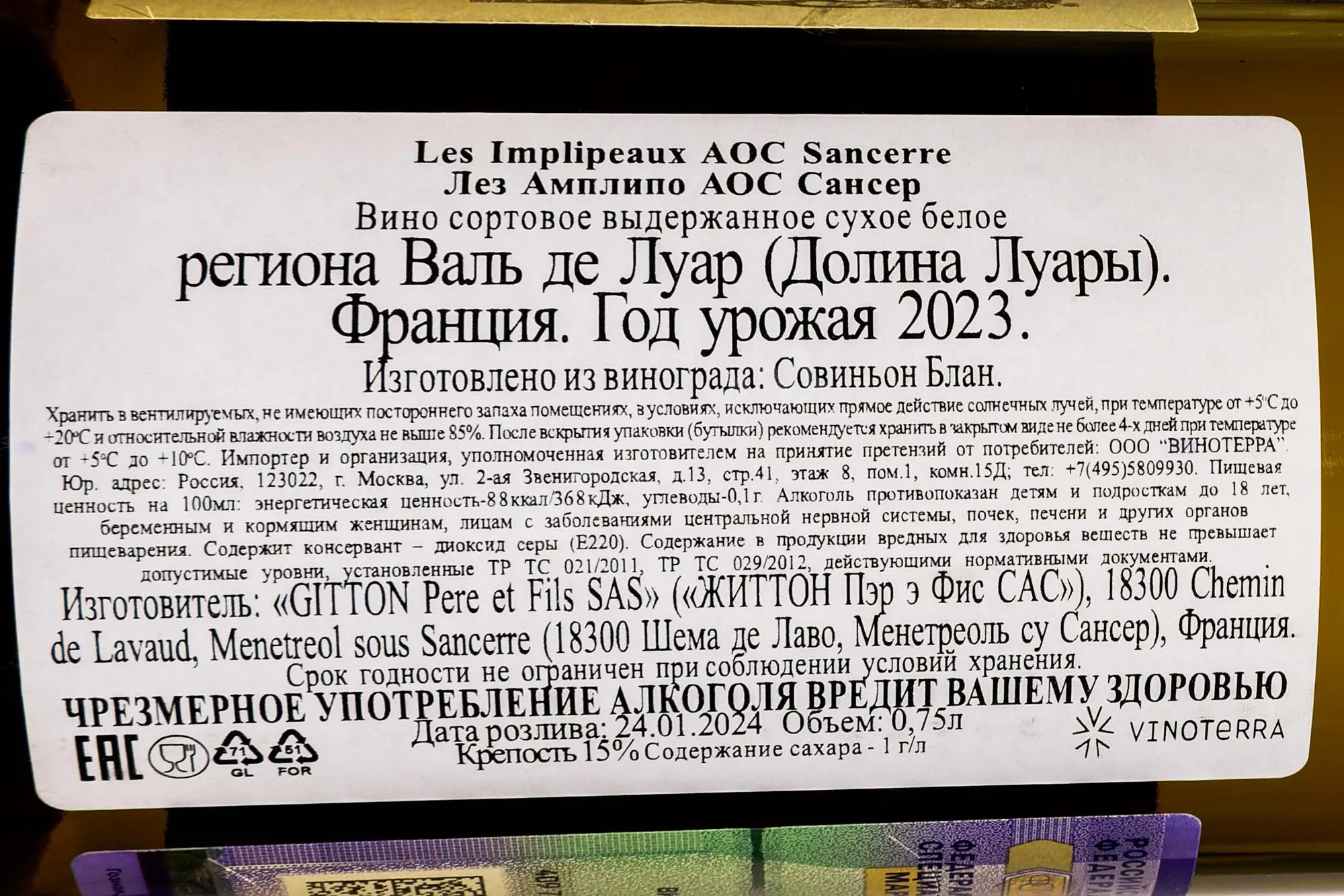 Вино Gitton Pere & Fils Sancerre Les Implipeaux AOC 2023 0.75 л было создано из ягод, выращенных на известняково-глинистых почвах виноградников Сансера, где особый микроклимат обеспечил высокую концентрацию вкусовых и ароматических веществ. Урожай собирался вручную на рассвете, после чего ягоды сразу подвергались бережному прессованию и медленной ферментации в стальных чанах при контролируемых низких температурах, что сохранило элегантность и свежесть напитка. Благодаря применению щадящей технологии без выдержки в дубовых бочках удалось сохранить чистоту сортового характера и ярко передать особенности терруара.