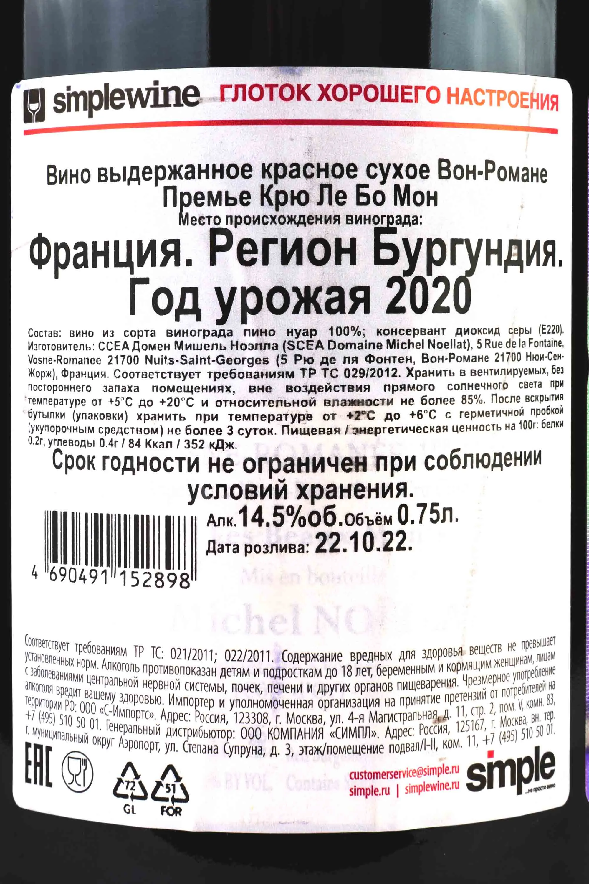 Вон-Романе Премье Крю Ле Бо Мон 2020 0.75
