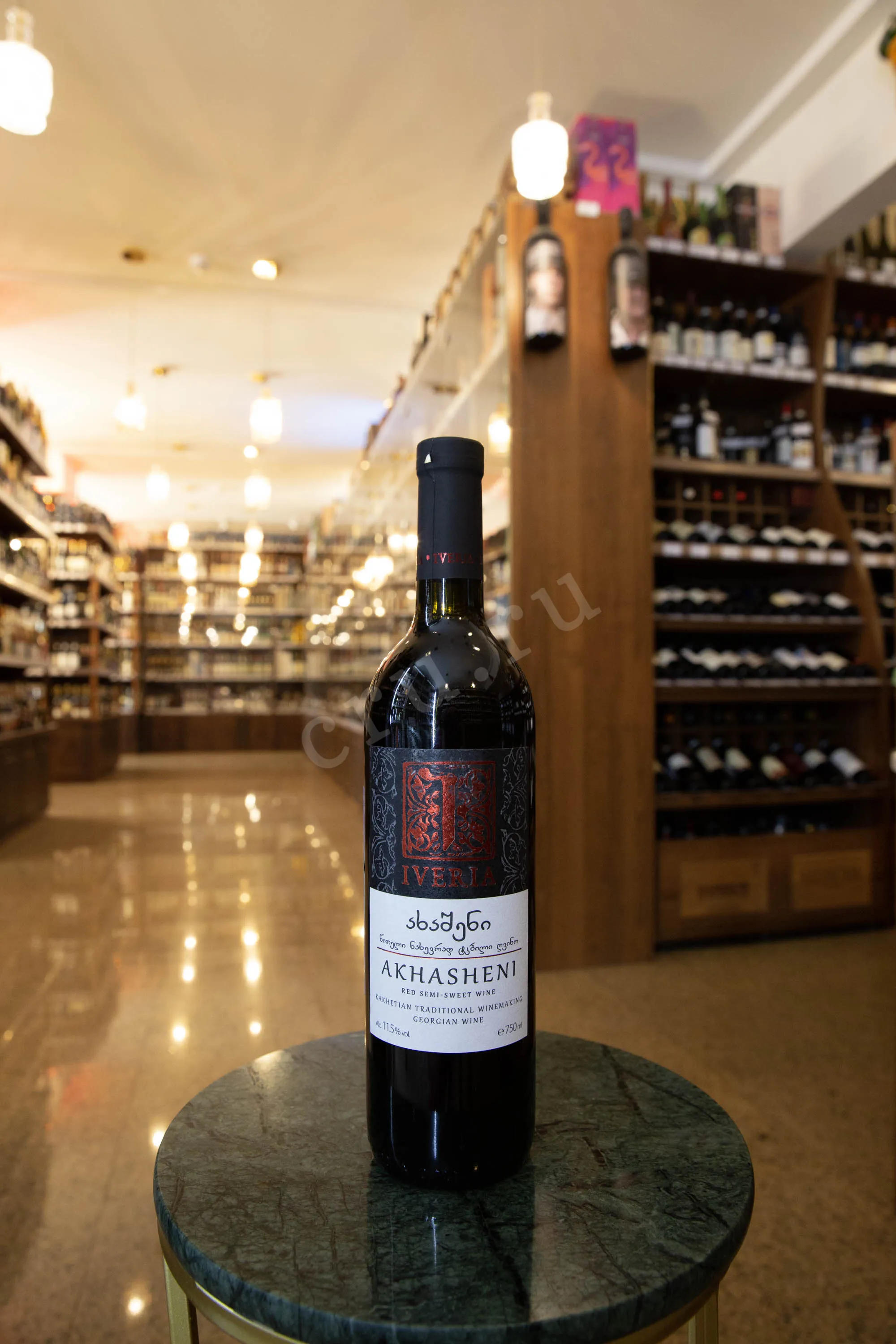 Iveria Akhasheni 2021 0,75 л выпускает грузинская компания ООО «Кахетинское традиционное виноделие», известная приверженностью традициям виноделия региона Кахетия. Виноград Саперави собирается вручную в особой микрозоне Ахашени, где почвы и климат способствуют формированию характерной полусладкой органолептики. Вино обладает умеренной крепостью (11,5%), гармоничным балансом между природной сладостью ягод и лёгкой кислотностью, подчёркивающей фруктово-ягодный характер вина. Каждый этап производства контролируется с особой тщательностью, чтобы сохранить аутентичные вкусовые свойства сорта и микрозоны.